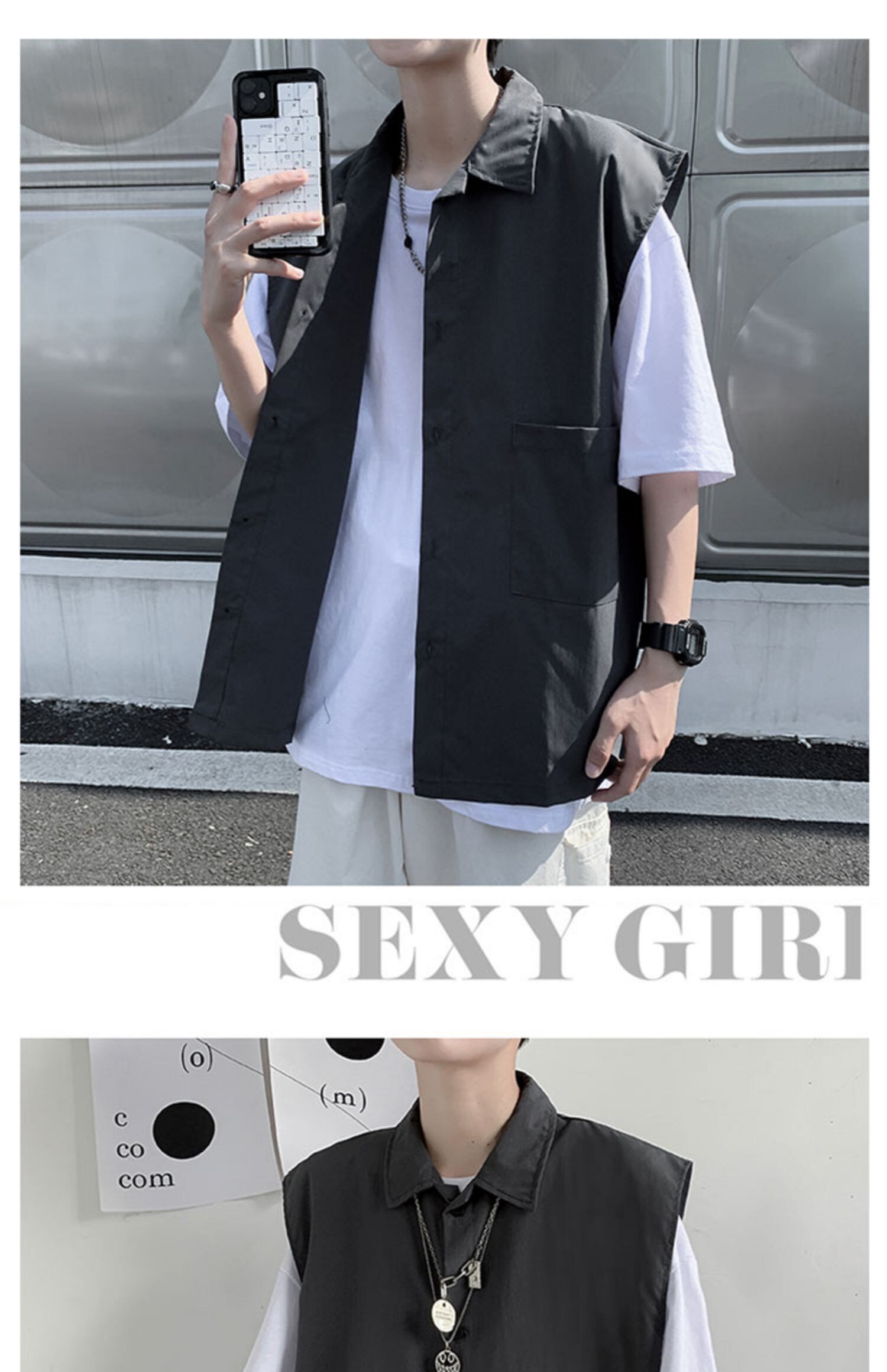 サマーノースリーブポケットシャツ ルーズカジュアルジャケット 夏物 7/14 mi2085077104205
