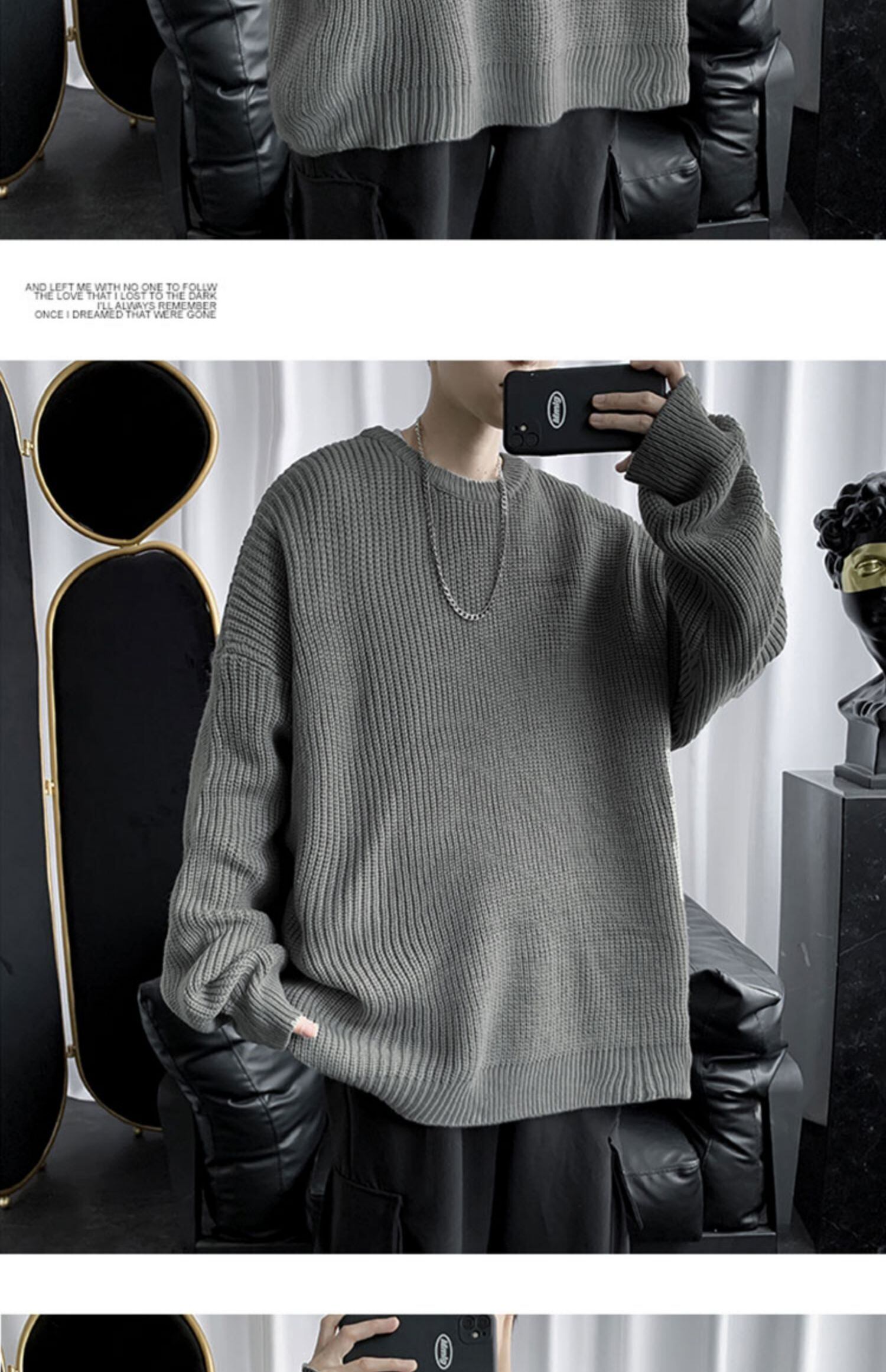 カラーラウンドネックセーター スタイルルーズカジュアルコート Oネック 7/14 mi2032691377721