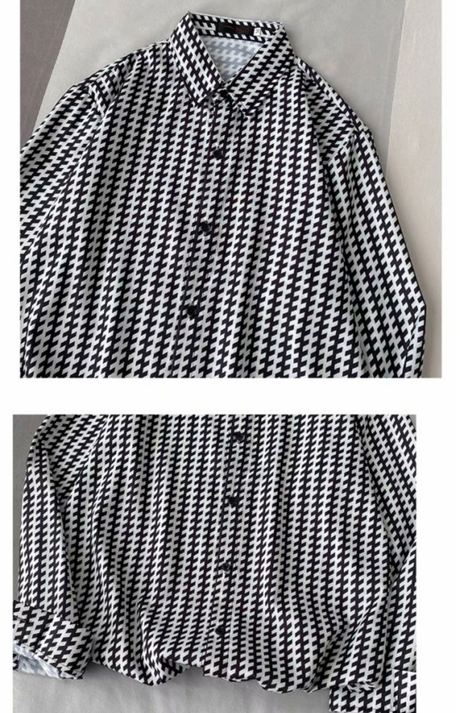スタイルプリント柄シャツ スタンダードルーズカジュアルジャケット ロング レトロ 7/14 mi206139305820