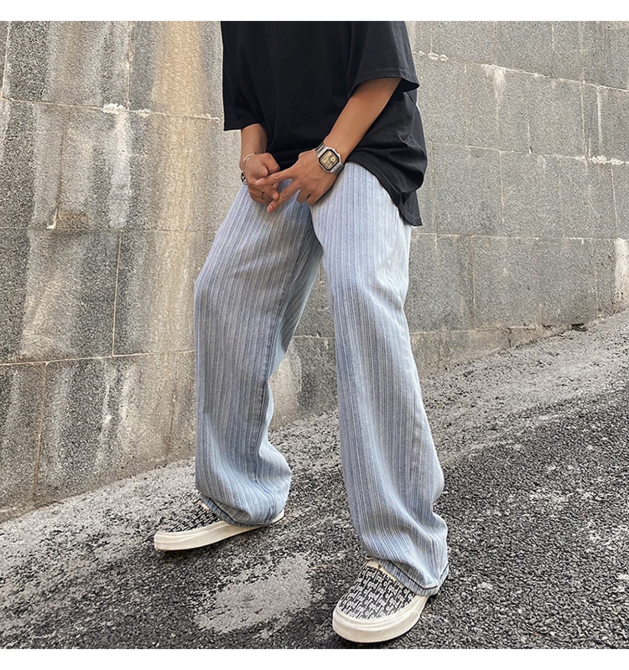 ストレッチウェストジーンズ ルーズパンツ ストライプカジュアル ストリート エラスティック 伸縮 7/14 mi2015577142802