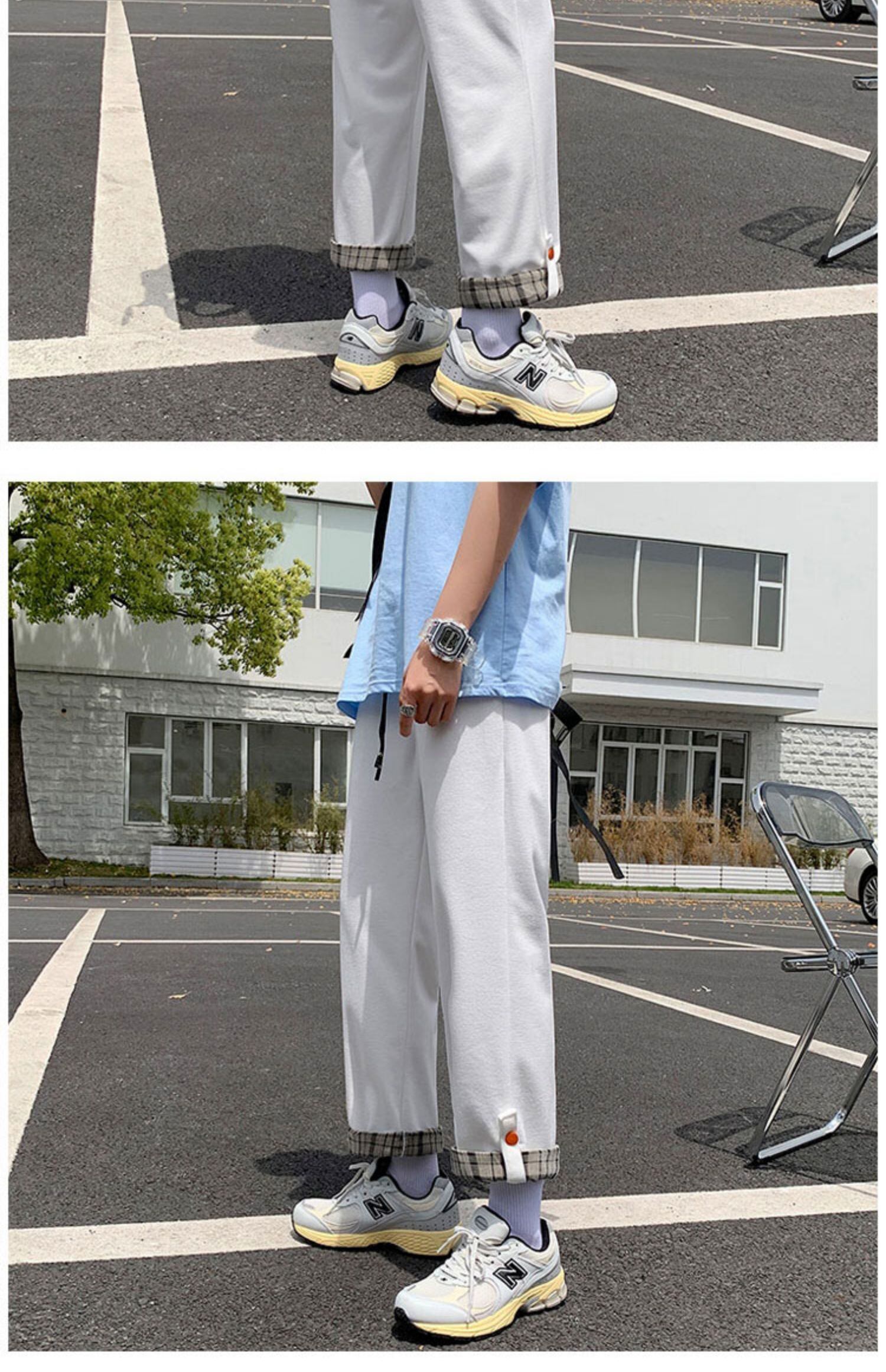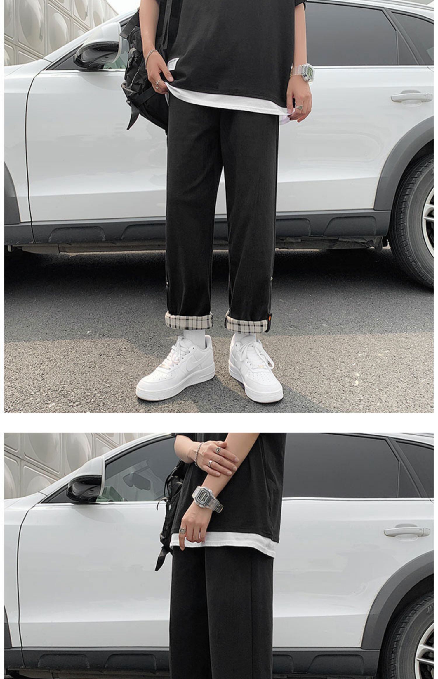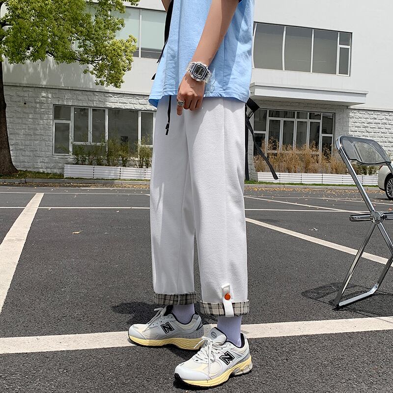 サマー格子柄カジュアルパンツ スタイルルーズクロップド 夏物 ステッチ 7/14 mi2048163851246