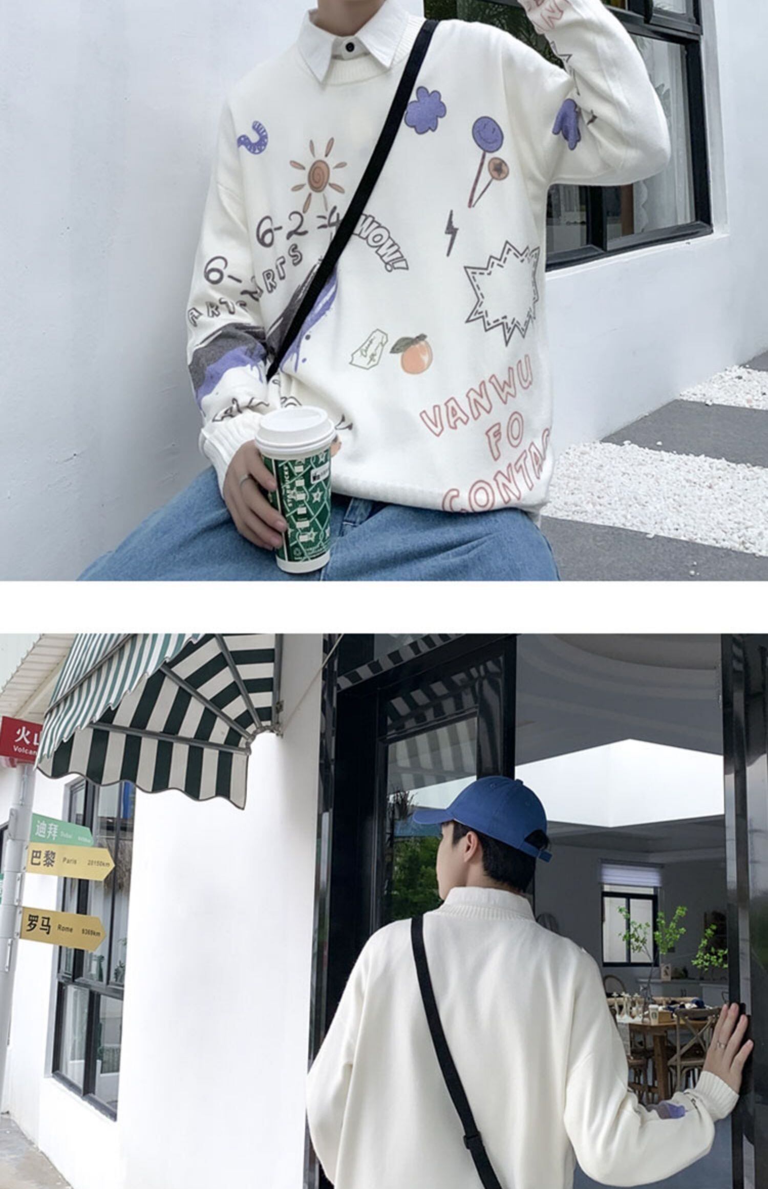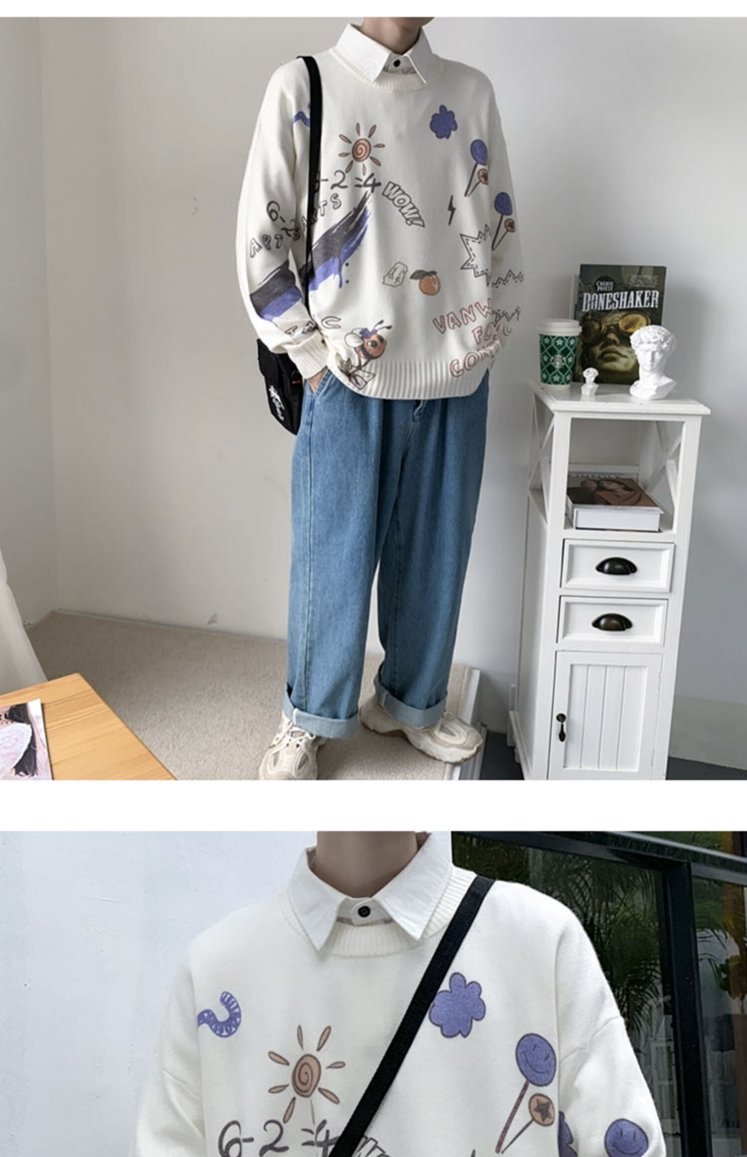 プリントセーター スプリングオータムスタイルルーズニット 春物 秋物 7/14 mi2032458017336