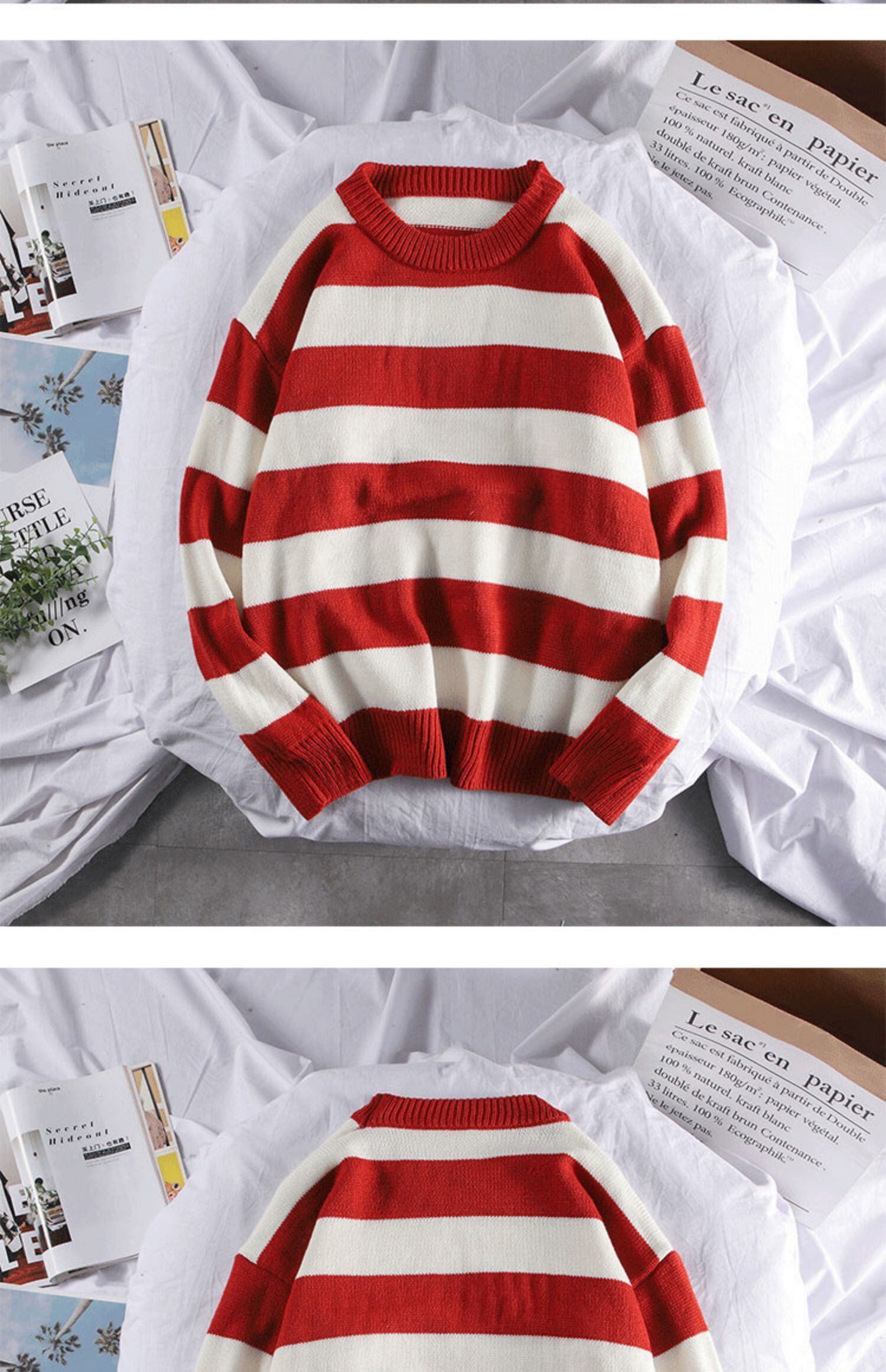 ラウンドネックセーター スタイルストライプスプリングオータムジャケット 春物 秋物 Oネック 7/14 mi2043603152296