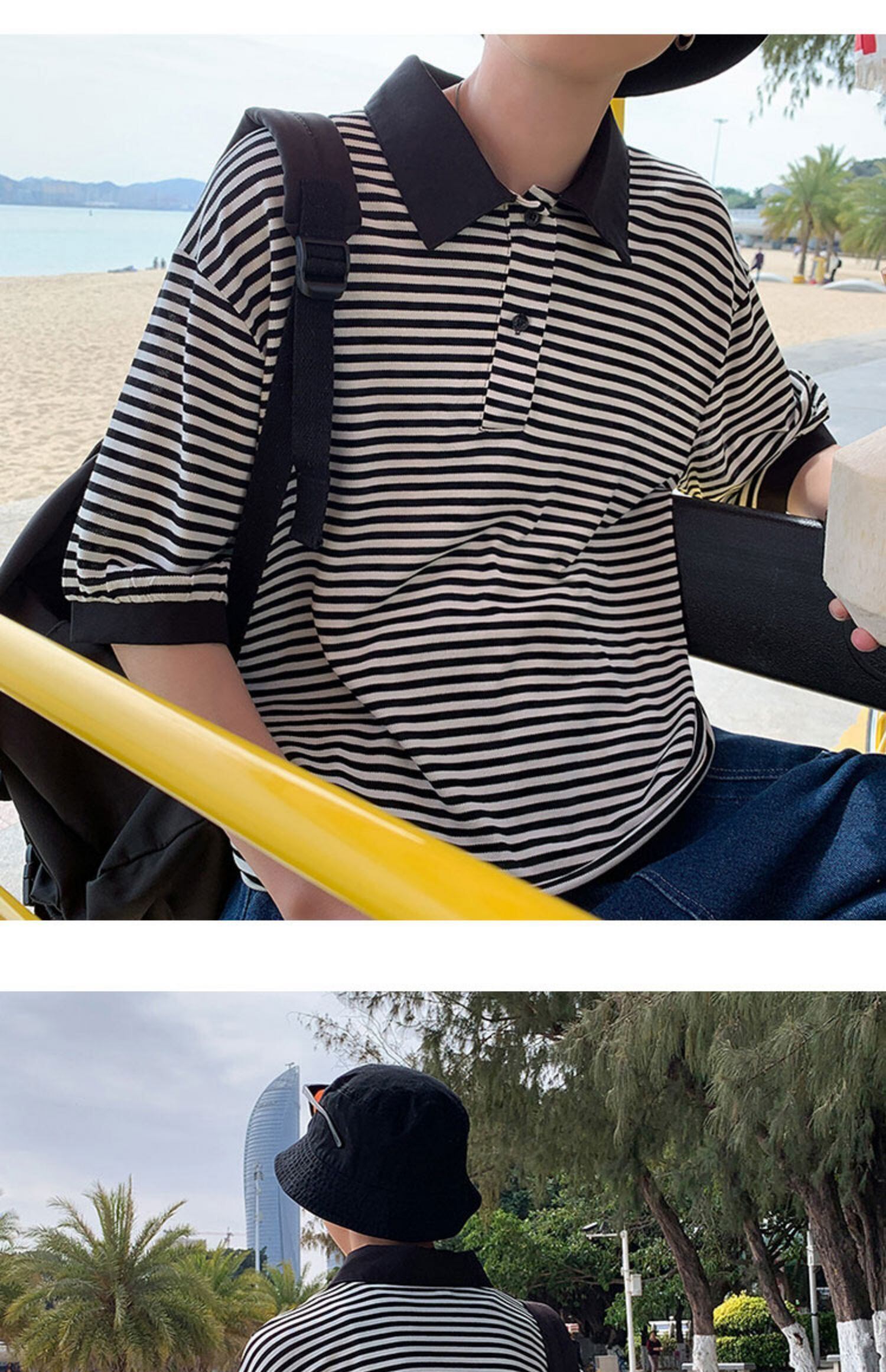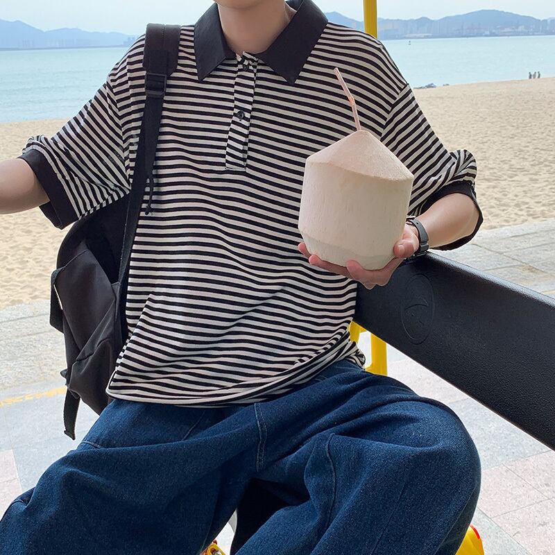 スタイルストライプシャツ ルーズカジュアルTシャツ 7/14 mi2049434986360