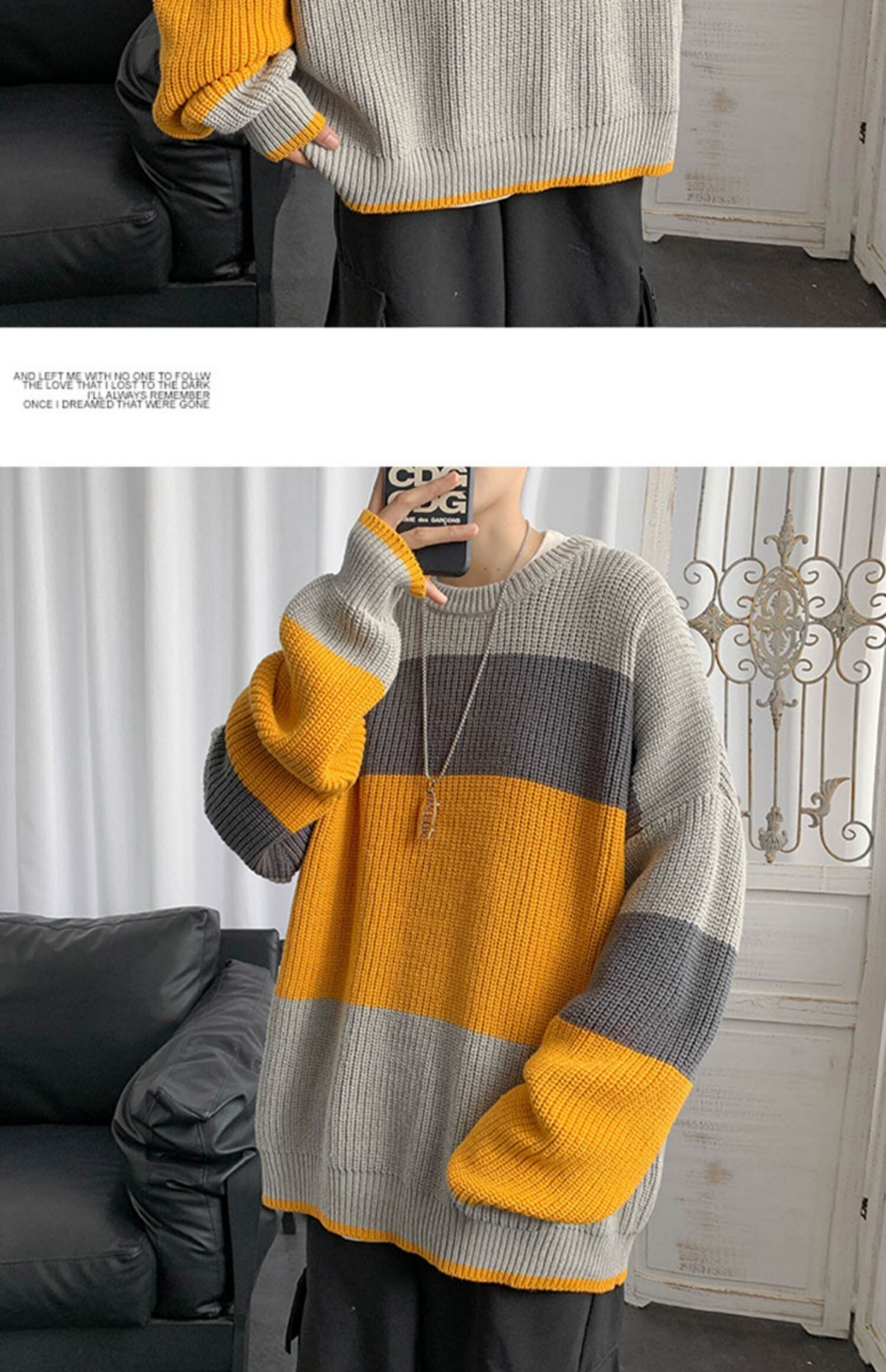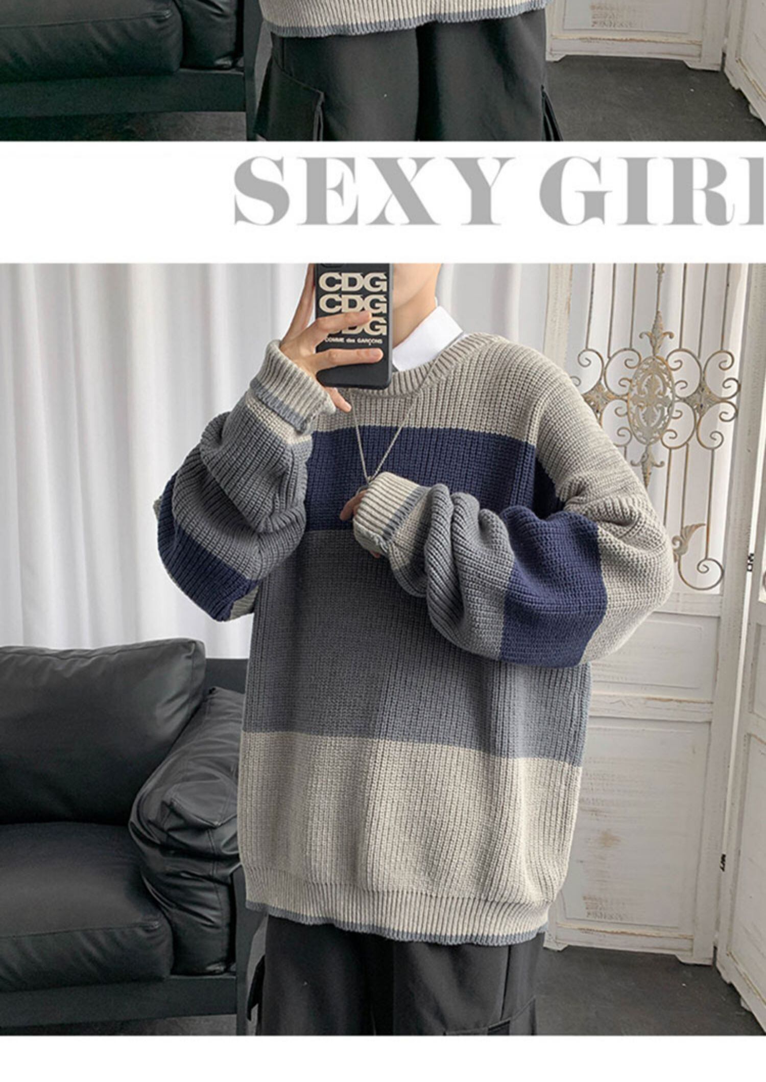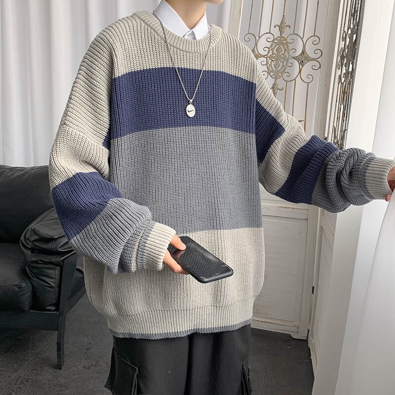 オータムウィンターストライプセーター ルーズニット 秋物 冬物 7/14 mi2060389564645