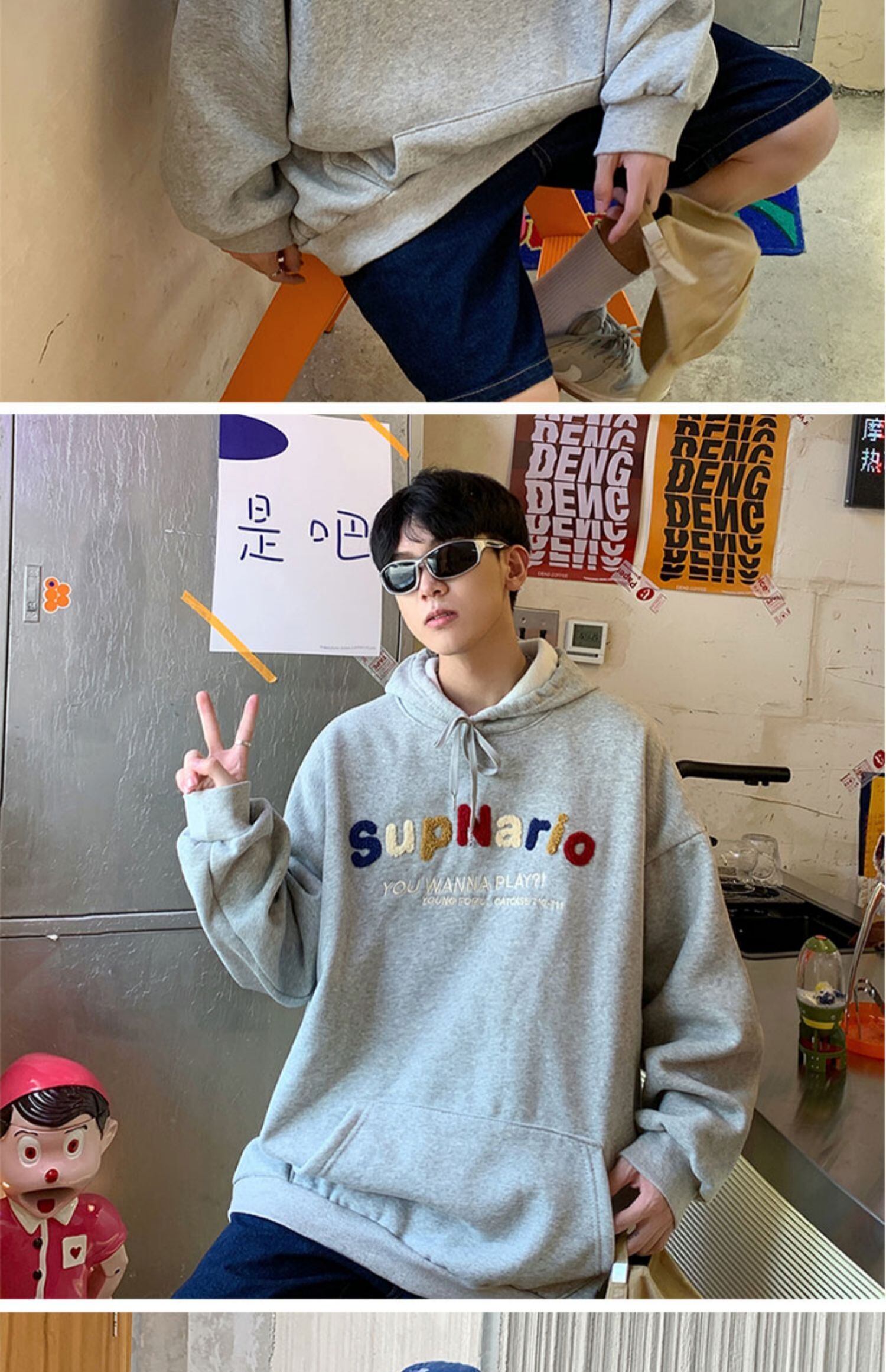 セーター ルーズカジュアルフードジャケット レッド ストリート 刺繍 7/14 mi2073320262575
