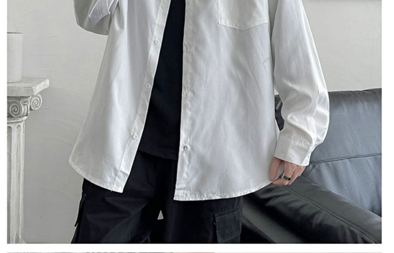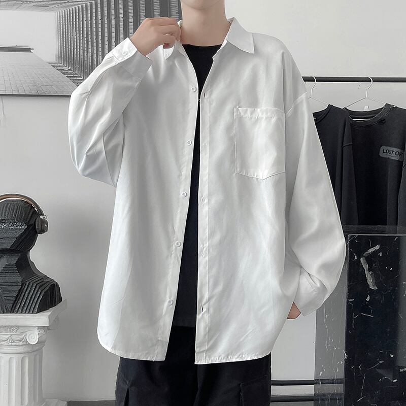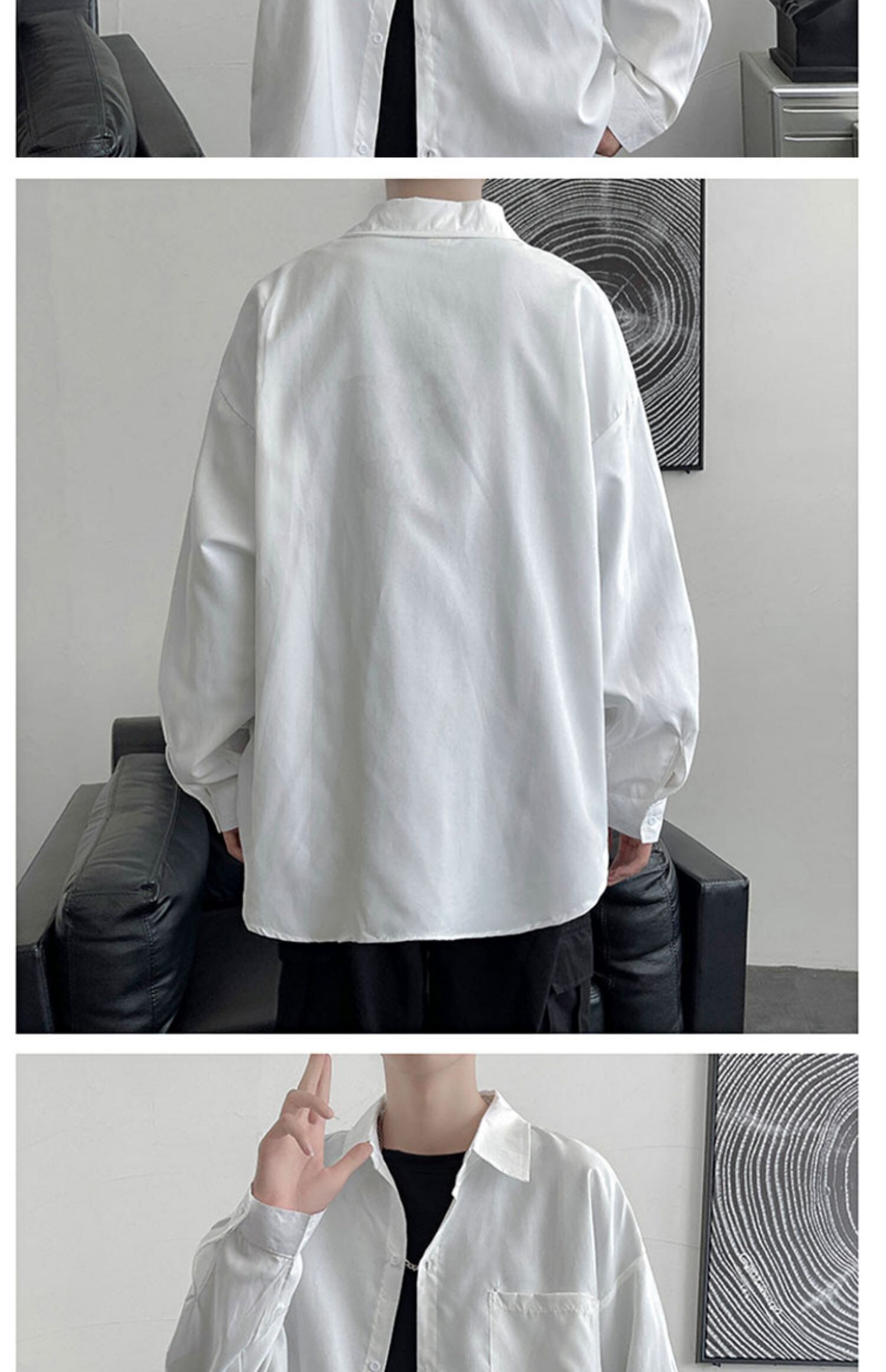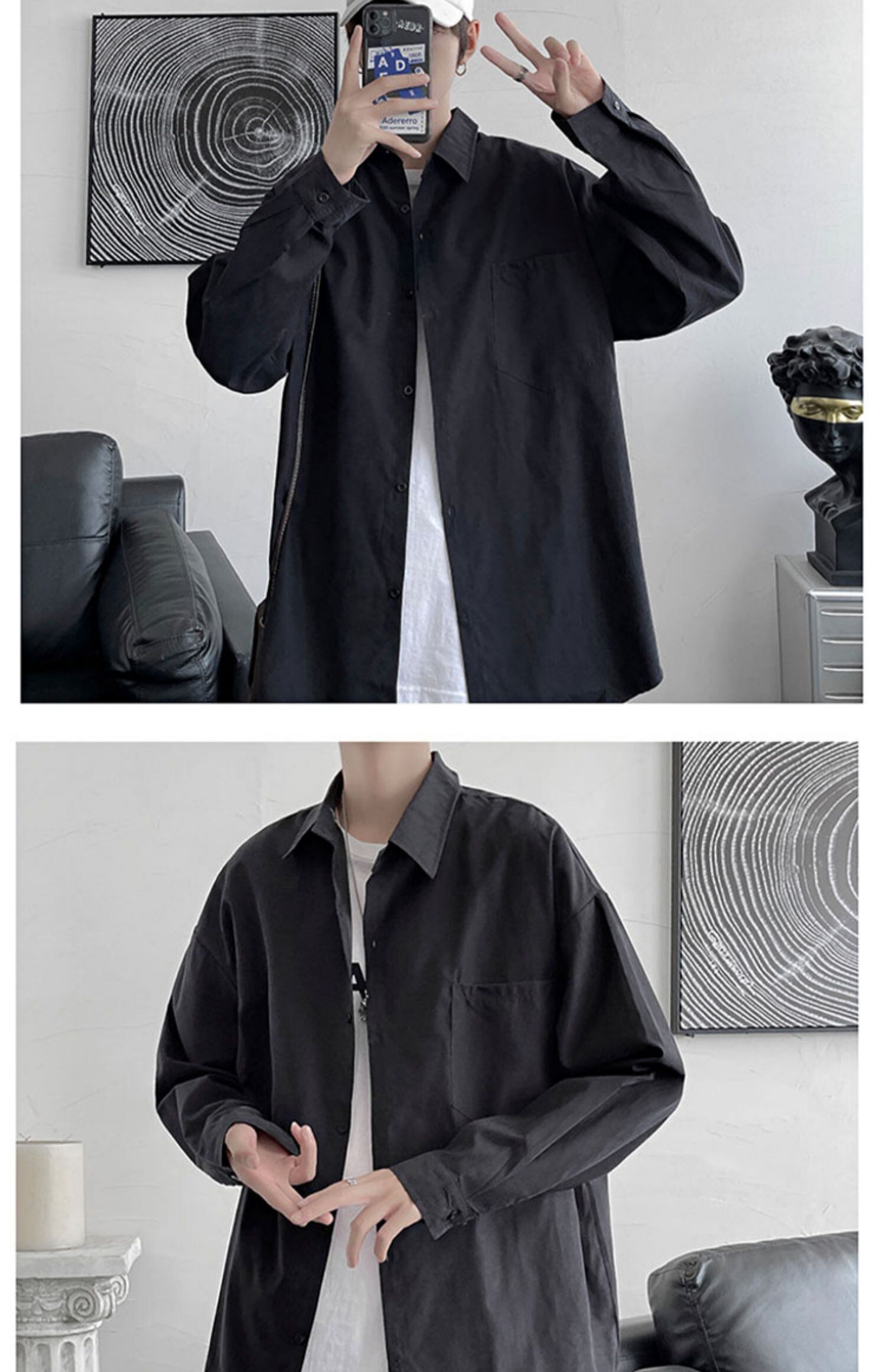 ソリッド カラーシャツ ダークブラックルーズカジュアルジャケット ロング ソリッドカラー 7/14 mi2058504538995