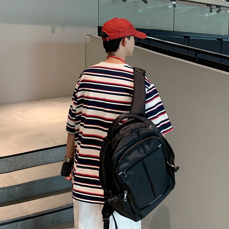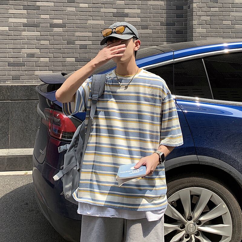サマーストライプTシャツ ルーズカジュアルラウンドネック 夏物 Oネック 7/14 mi2038853413638