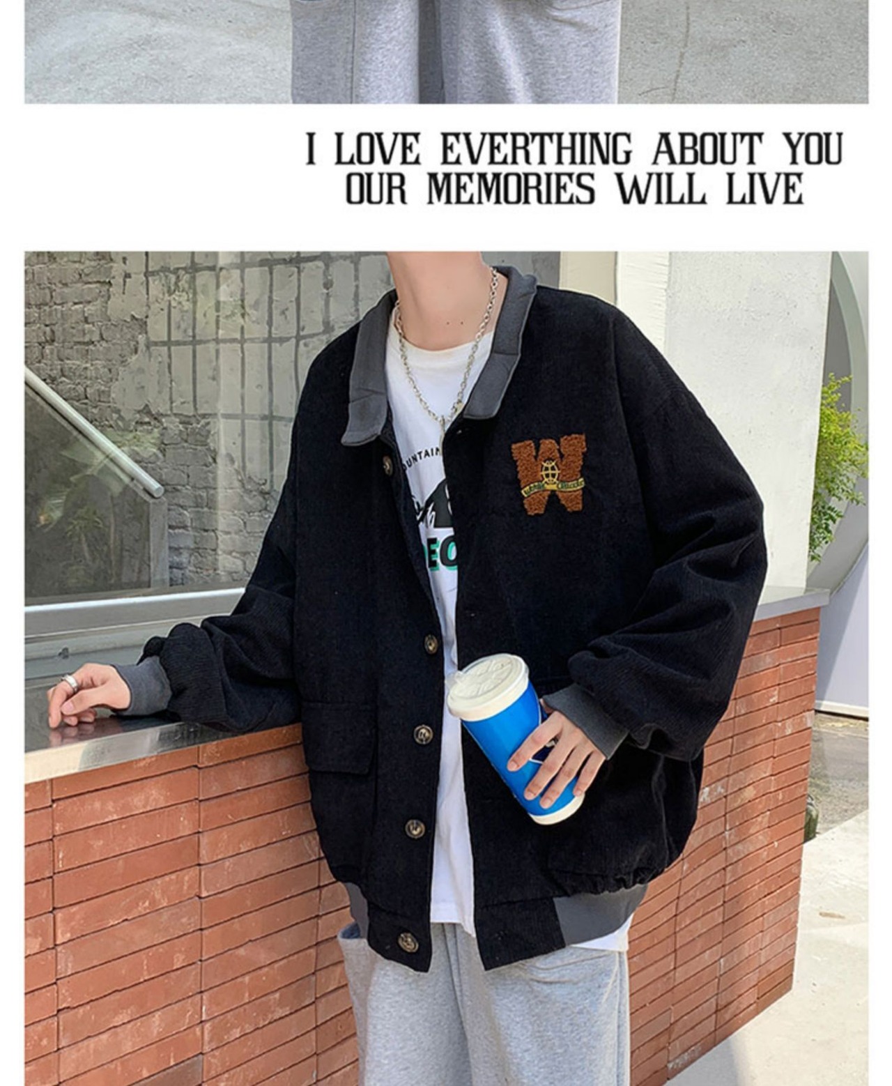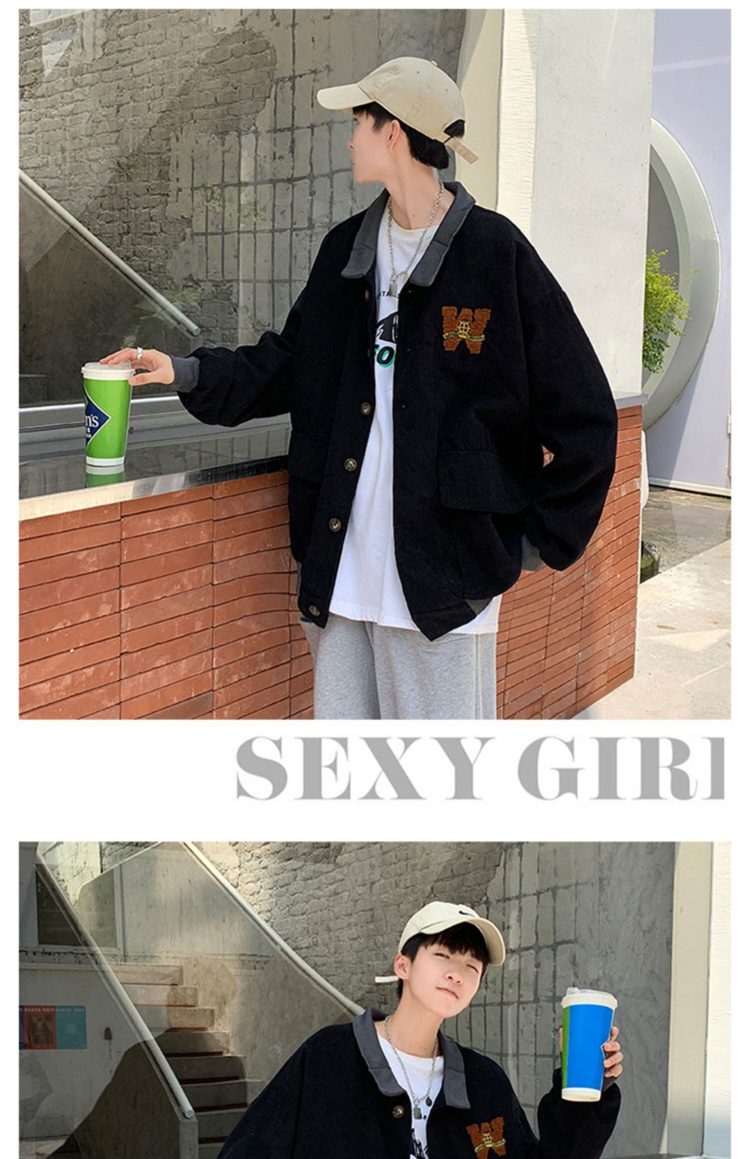 コーデュロイジャケット オータムスタンダードルーズカジュアル レッド レトロ 刺繍 秋物 7/14 mi207671760978