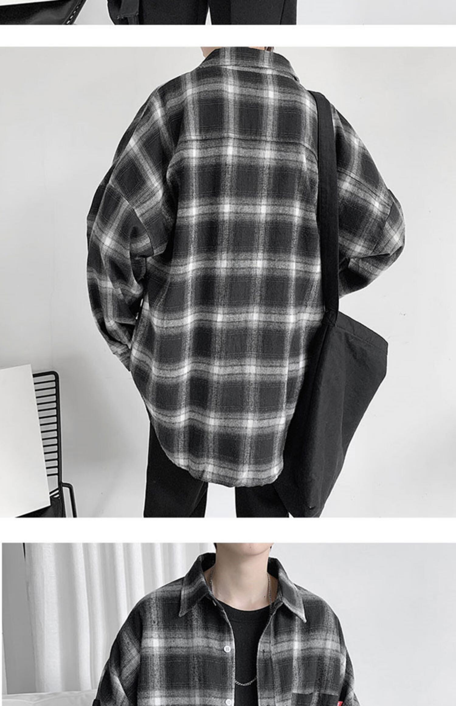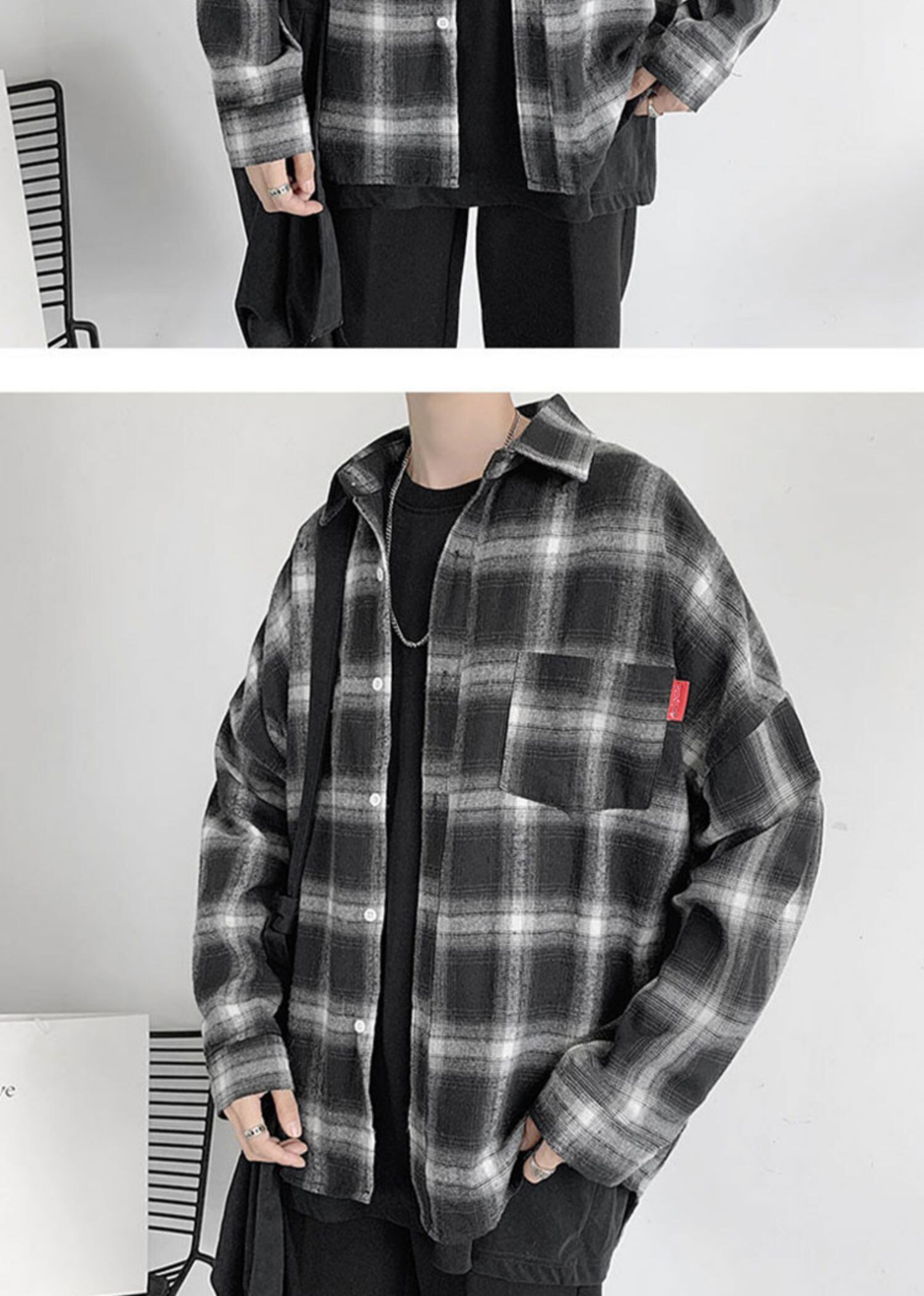 格子柄シャツ ルーズ ロング 7/14 mi2066774054634