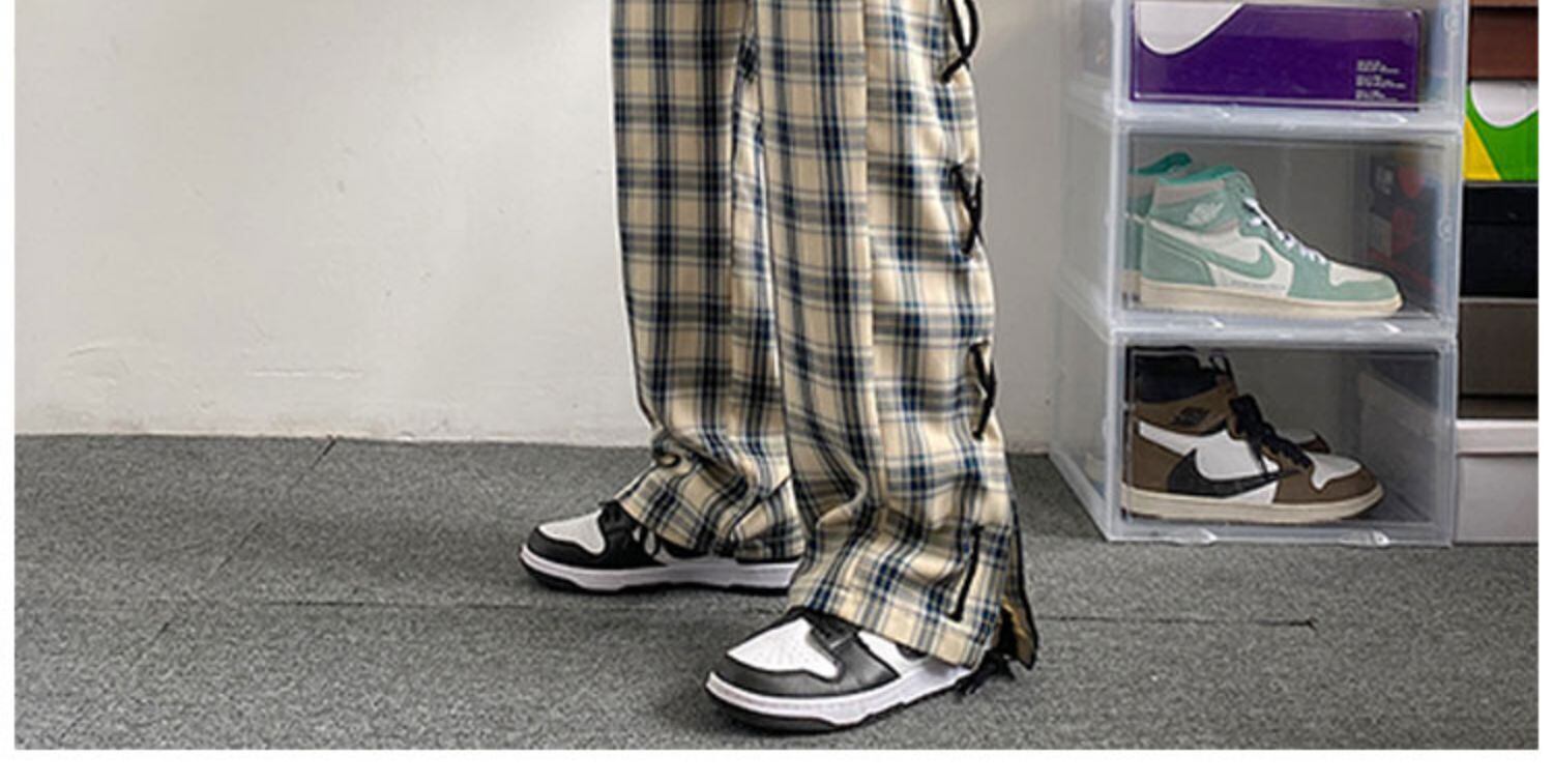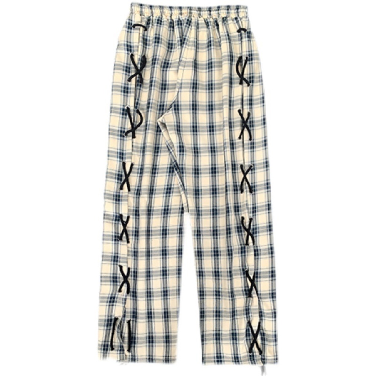 スタイル格子柄パンツ ダークルーズギャザーカジュアル ストリート 7/14 mi2035995553269