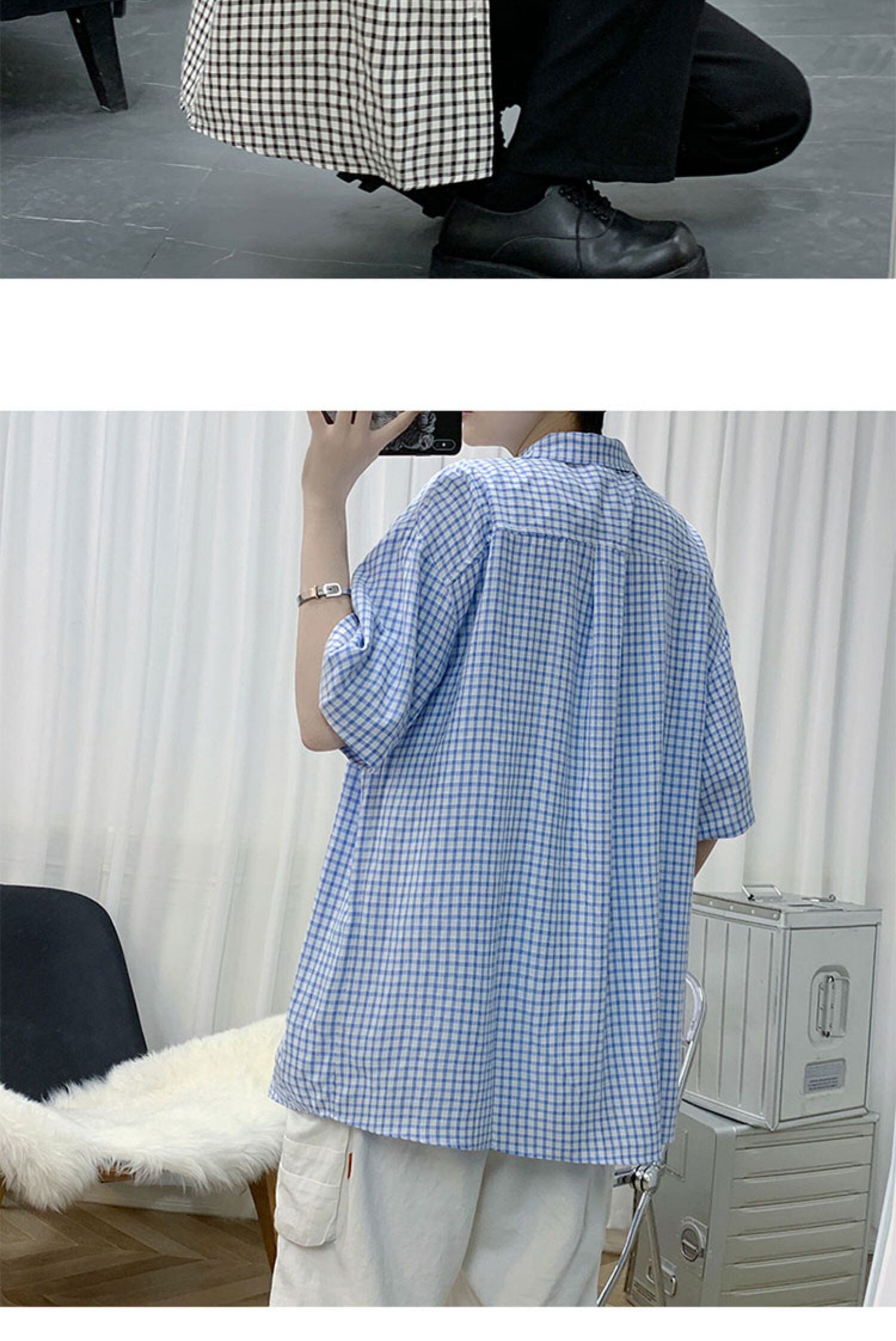 スタイルシャツ ルーズカジュアル格子柄 かわいい 7/14 mi2088144393055
