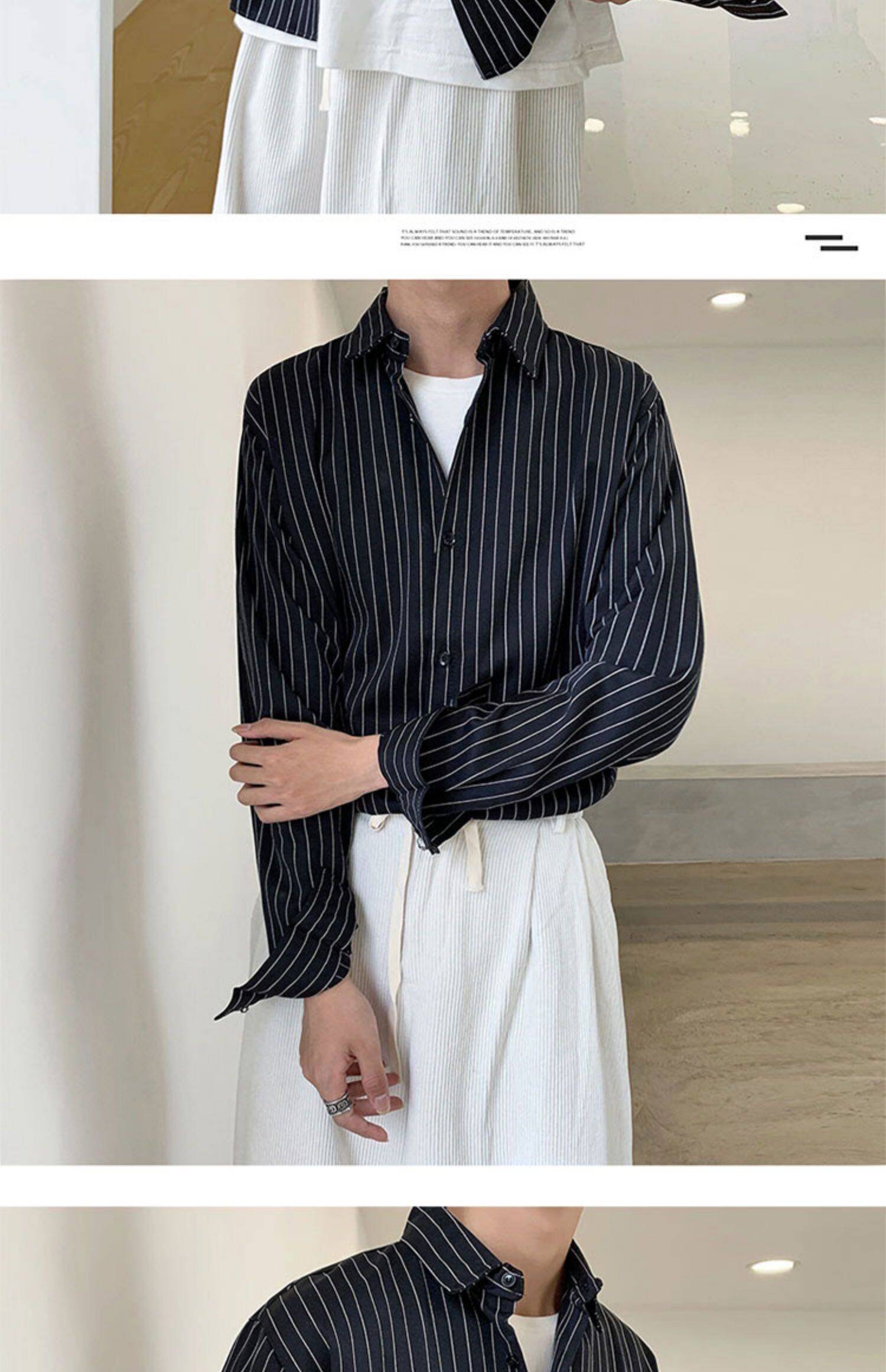 スタイルストライプシャツ ルーズジャケット ロング 7/14 mi2050895842988