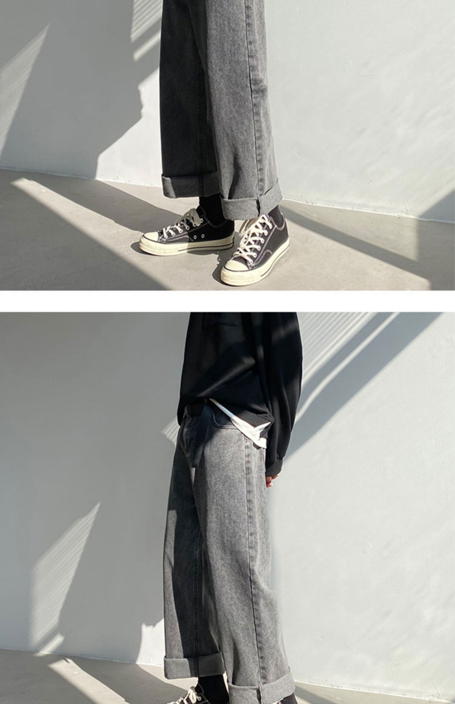 ジーンズ スプリングオータムルーズダークブラックパンツ 春物 秋物 7/14 mi2089874663016