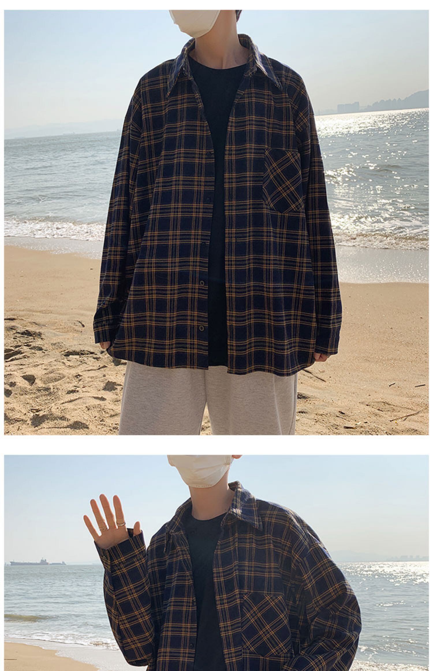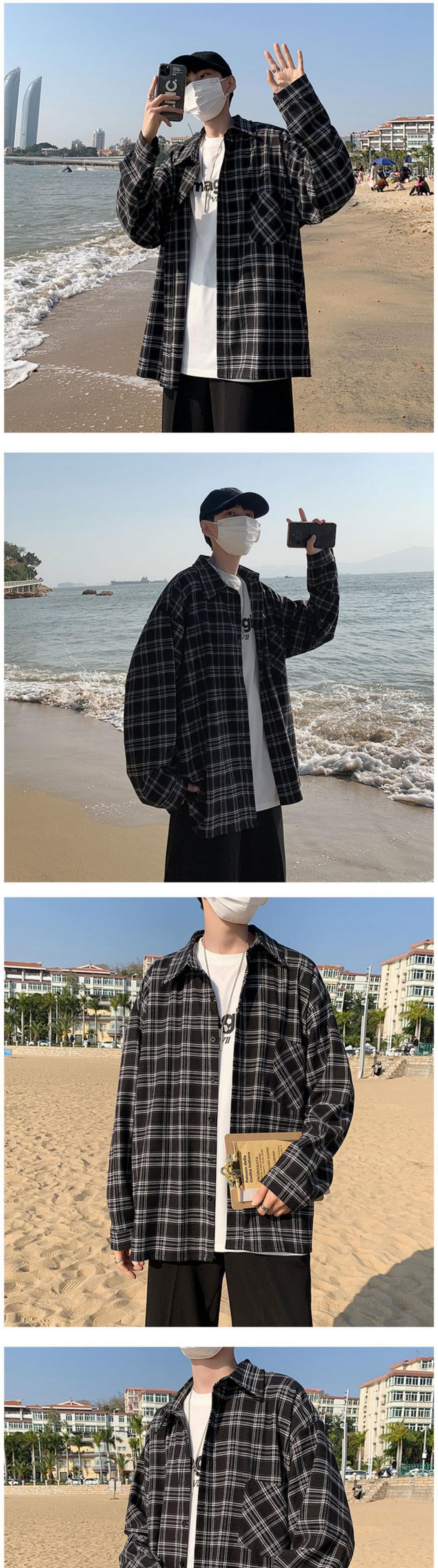 スプリングサマースタンダードスタイル格子柄シャツ カジュアルシャツ ロング レトロ 春物 夏物 7/14 mi201942119709