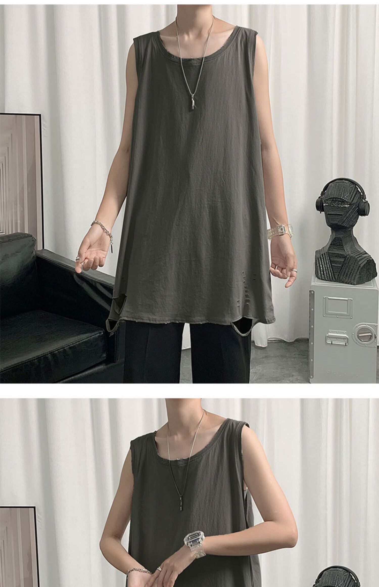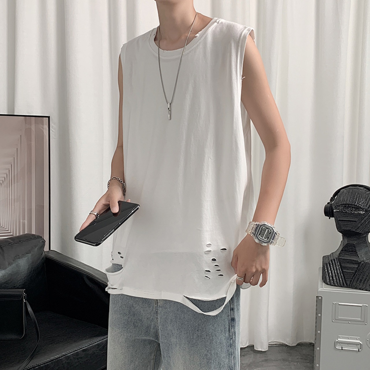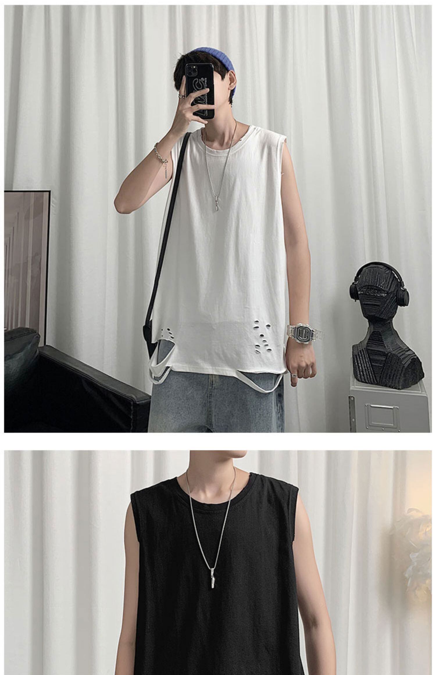 サマールーズカジュアルノースリーブホワイトTシャツ ストリート 夏物 7/14 mi202506926916