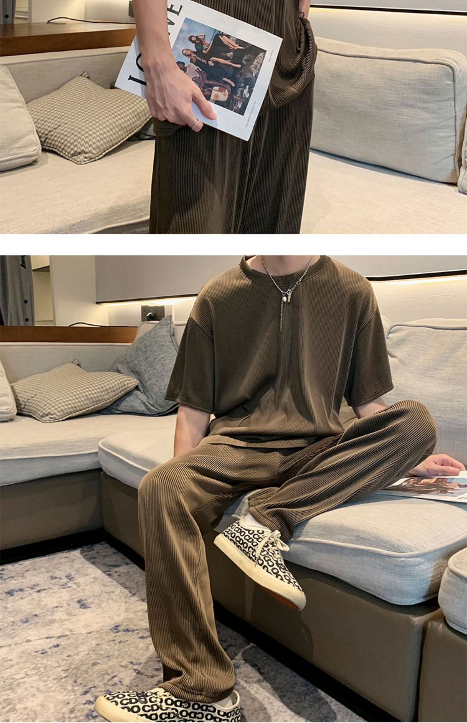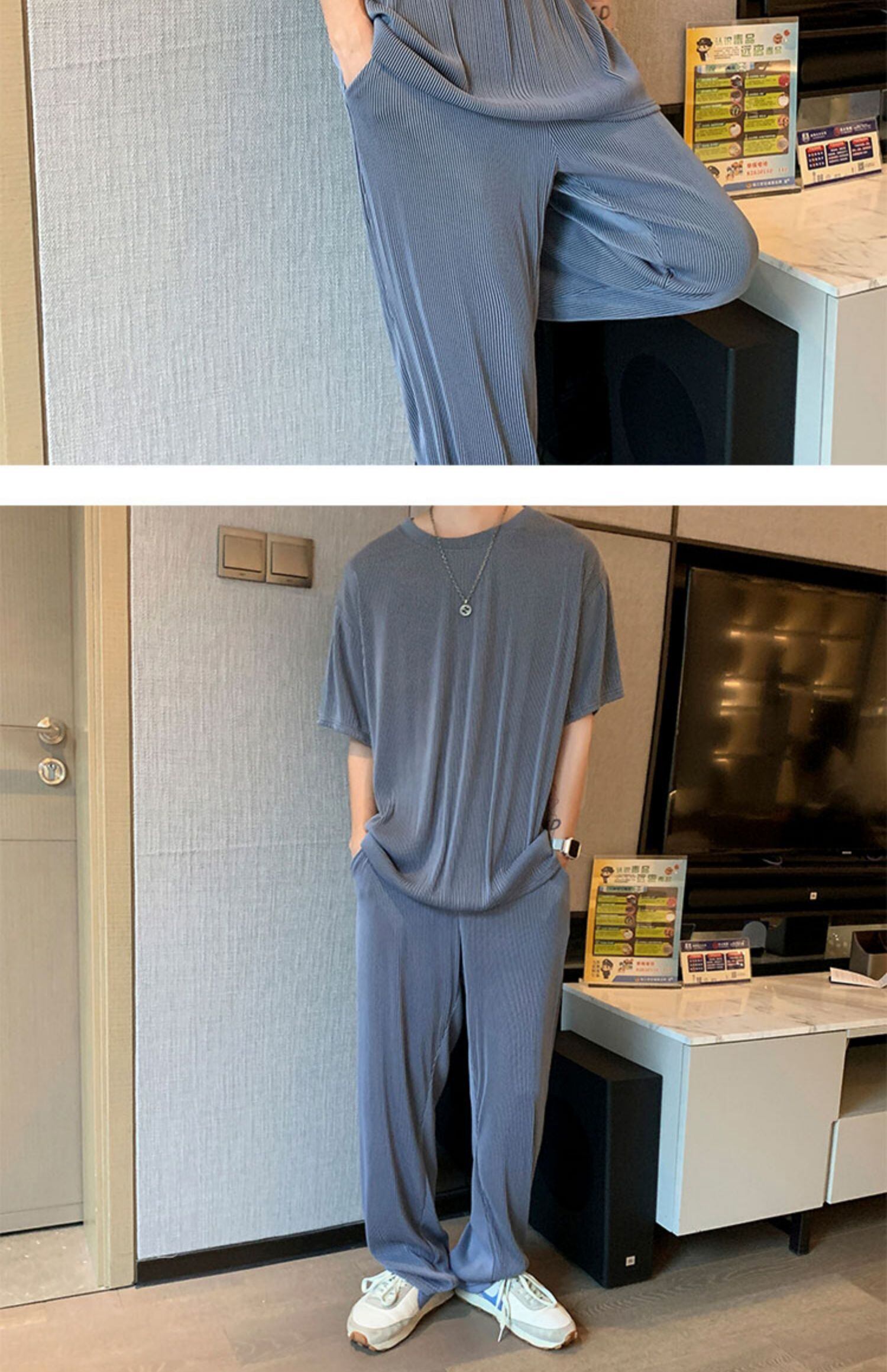 カジュアルサマールーズパンツ 夏物 ストライプ 7/14 mi2093037758351