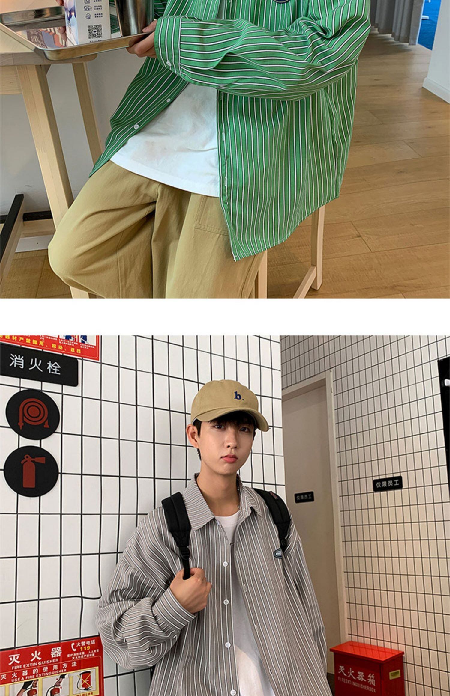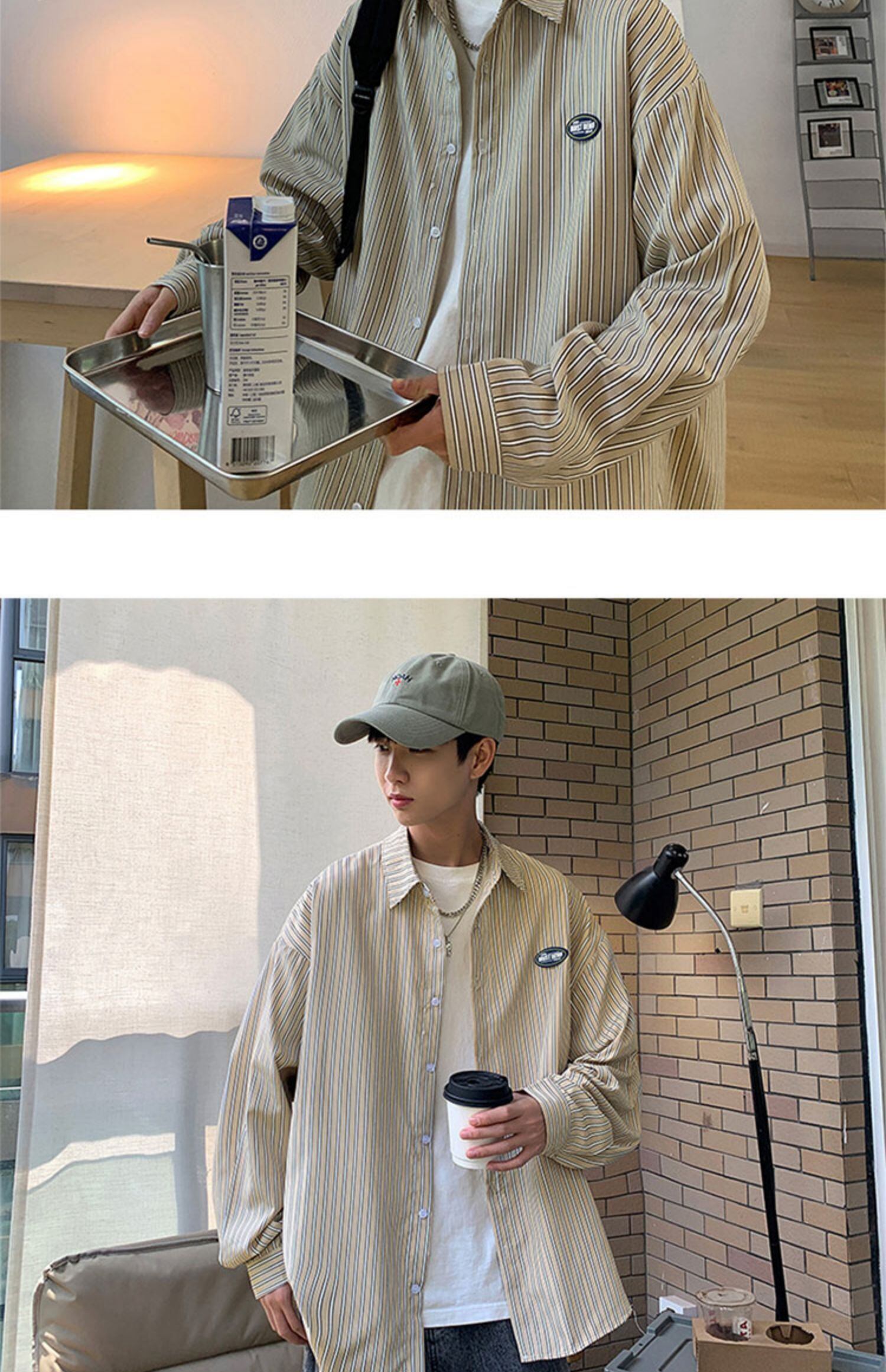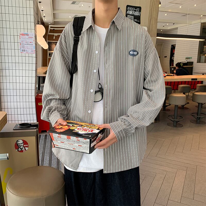ブルーストライプシャツ オータムスタイルルーズカジュアルジャケット ロング 秋物 7/14 mi2069384333682
