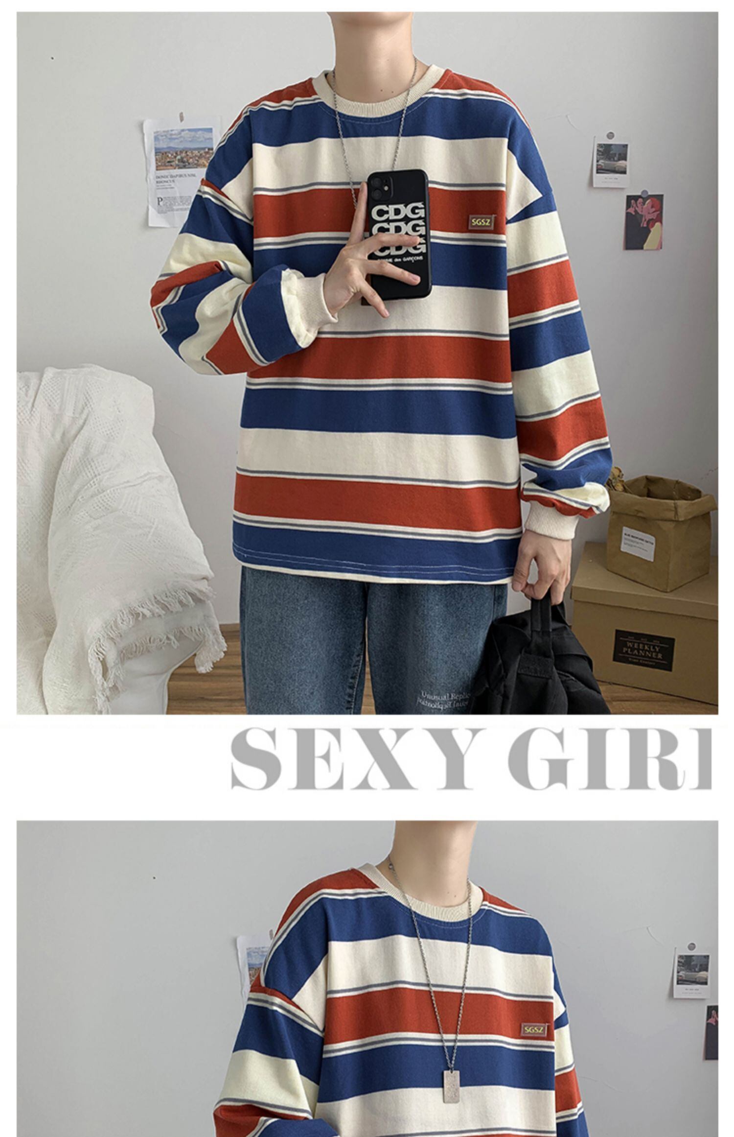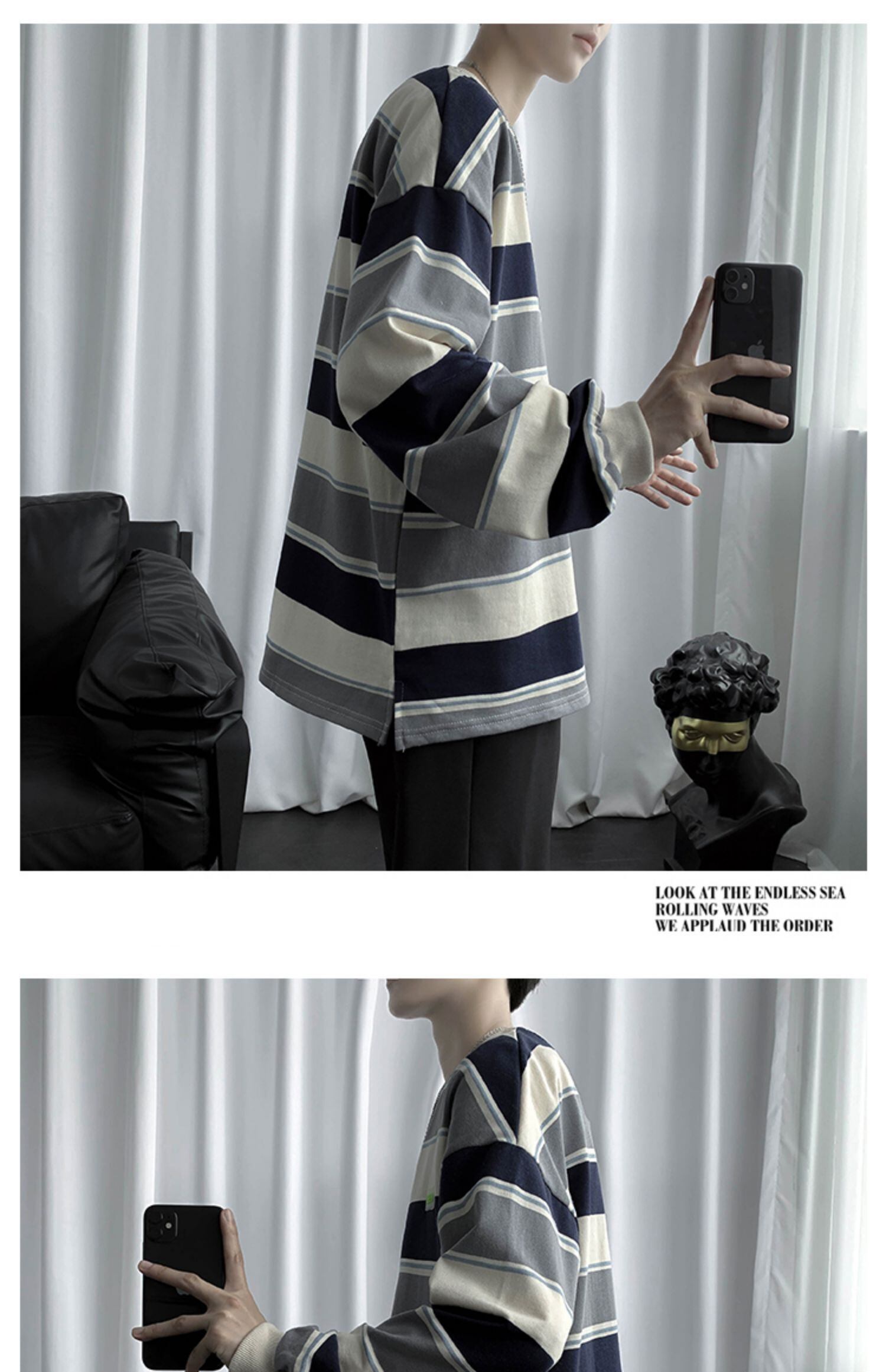 ストライプセーター ルーズオータムコート スタイル ロング ストリート 秋物 7/14 mi2011417131319