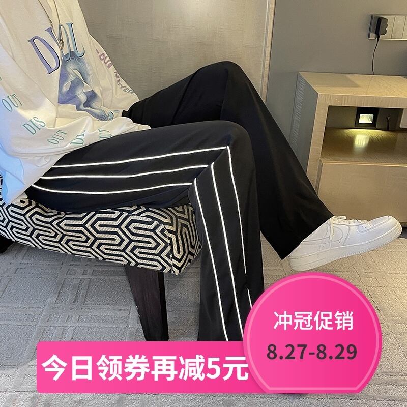 ストライプカジュアルパンツ スタイルルーズワイドレッグ ストリート ワイドパンツ 7/14 mi2079537495866