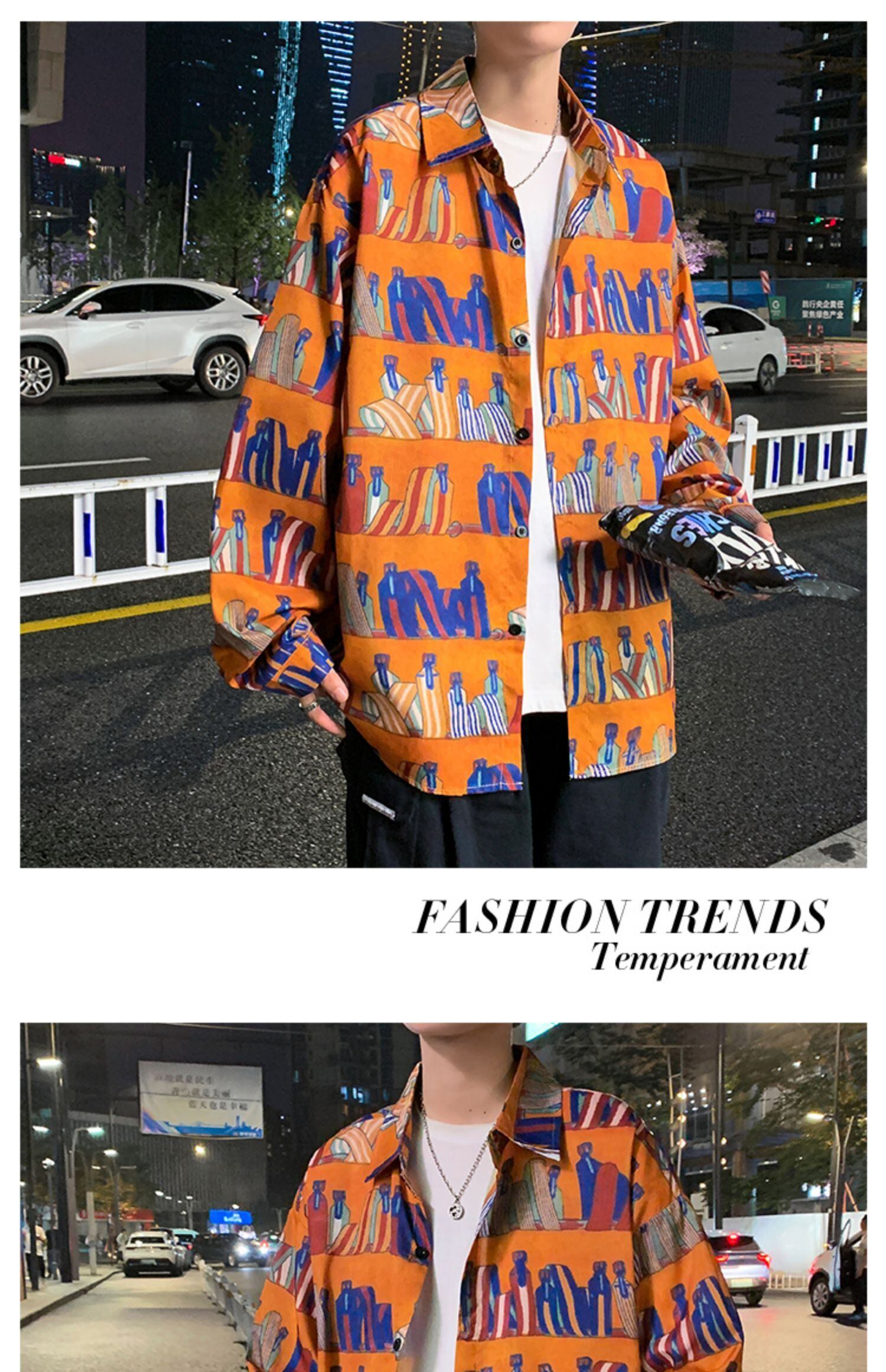 スタンダードプリントシャツ ルーズ長袖スリーブジャケット ロング レトロ ストリート 7/14 mi2077812744511