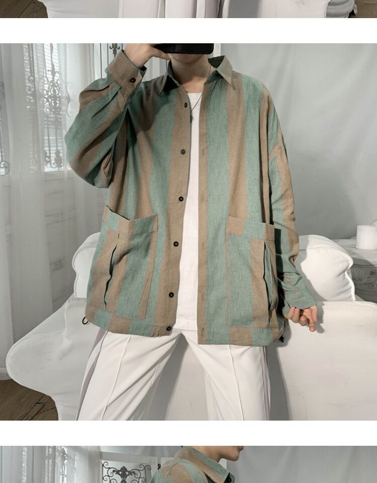スプリングオータムストライプシャツ ルーズスタイルカジュアルトップス 春物 秋物 7/14 mi2071316960365