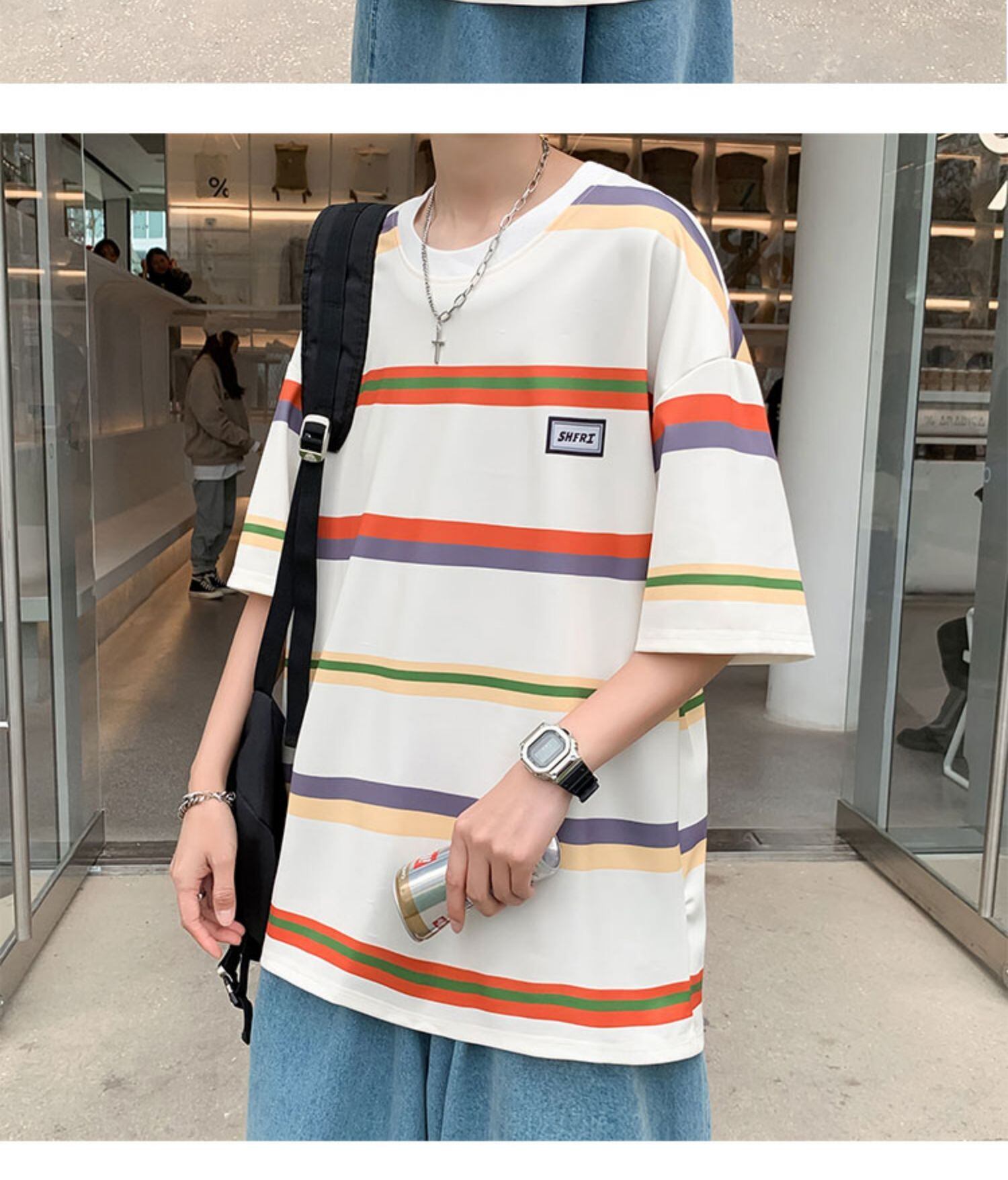 サマーストライプスリーブルーズカジュアルシャツ カラーTシャツ 夏物 7/14 mi2017365720851