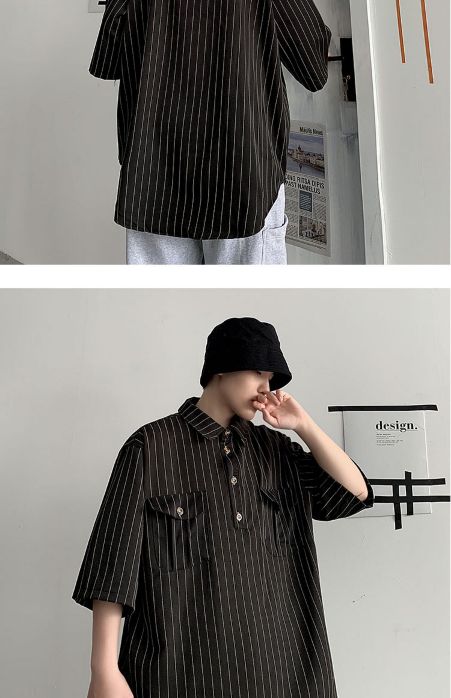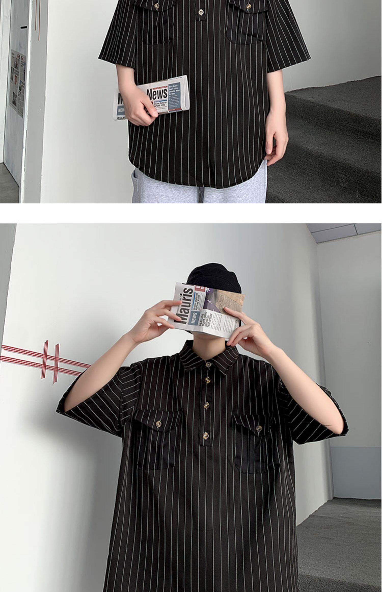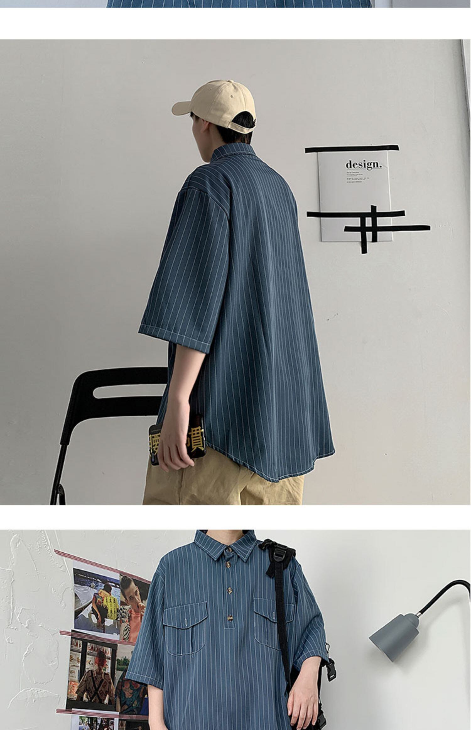 シャツ サマーダークルーズカジュアルスタンダードストライプ レトロ 夏物 7/14 mi2039459858597