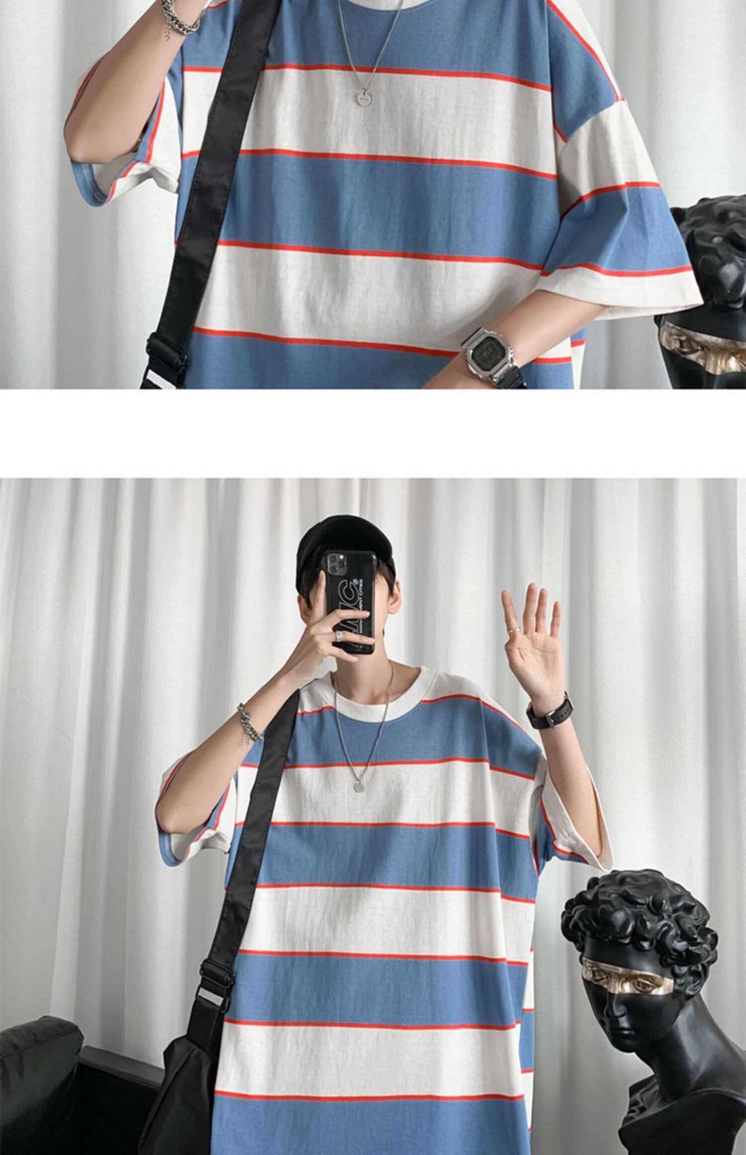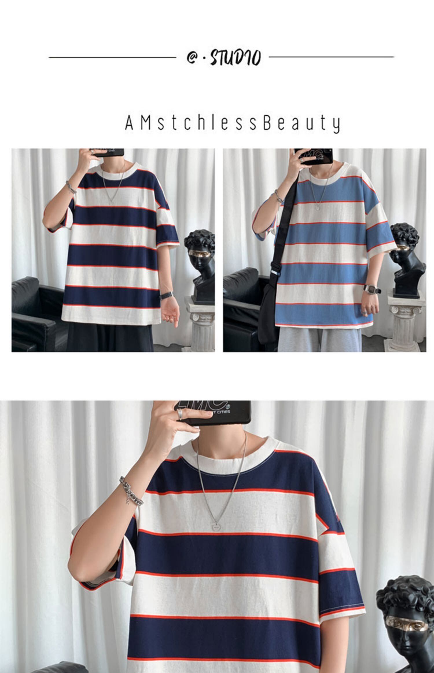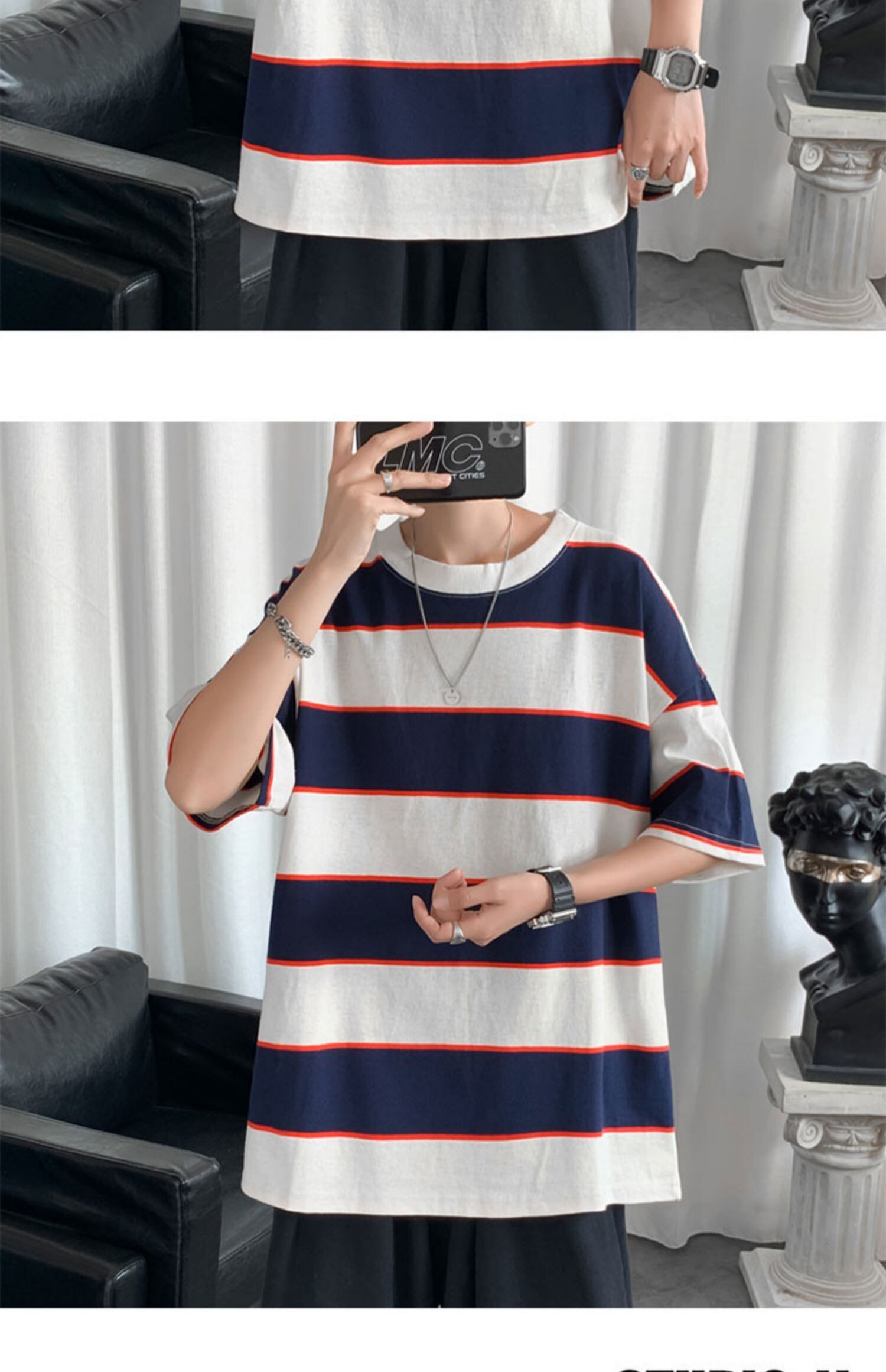 スタイルストライプスリーブシャツ ルーズカジュアルTシャツ かわいい 7/14 mi208531461756