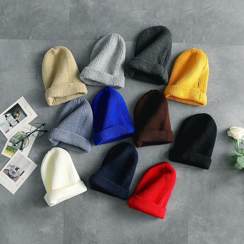 オータムウィンターカラーレッドニット 帽子 ストリート 秋物 冬物 ピュア 7/14 mi2023398654009