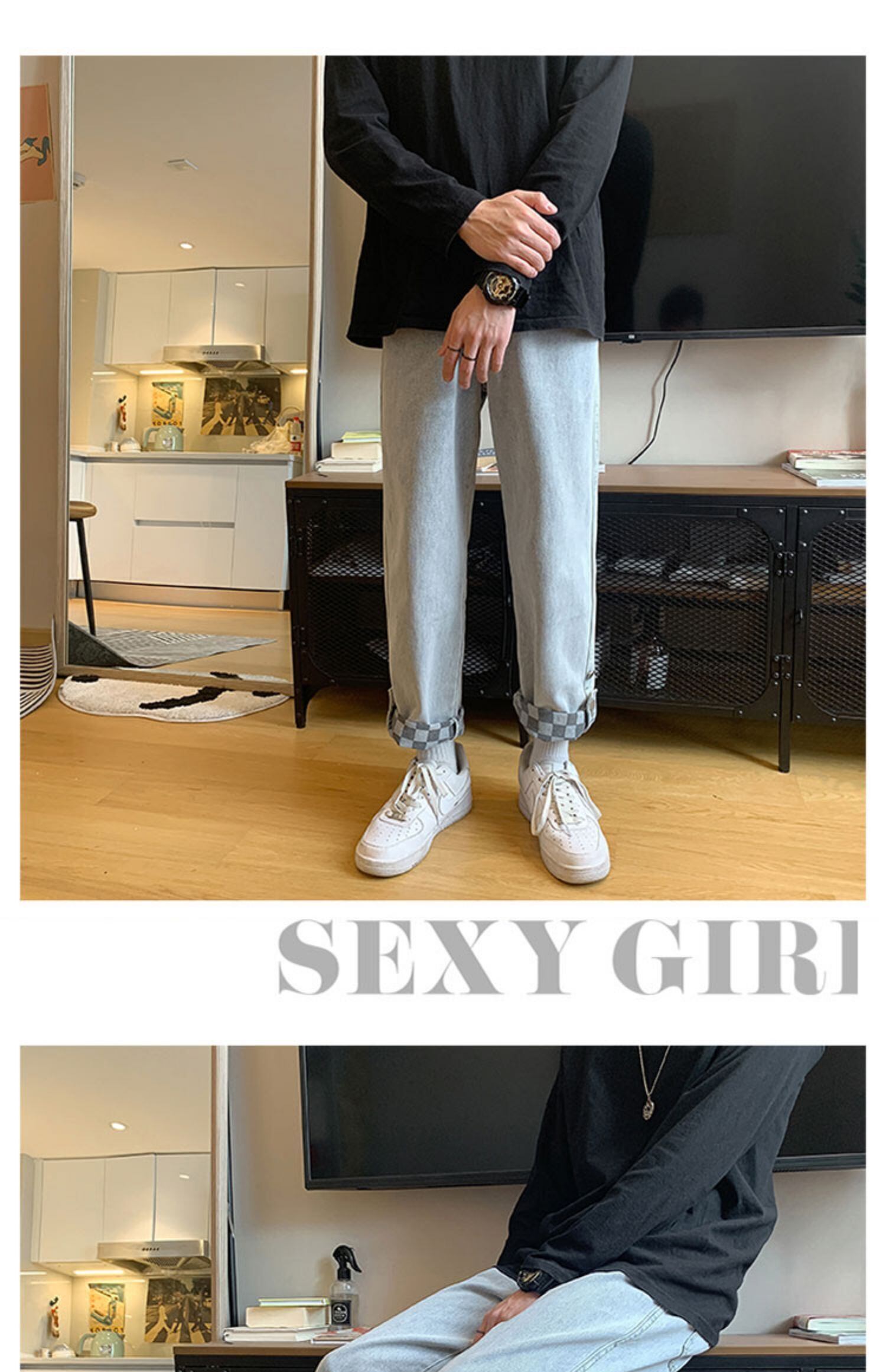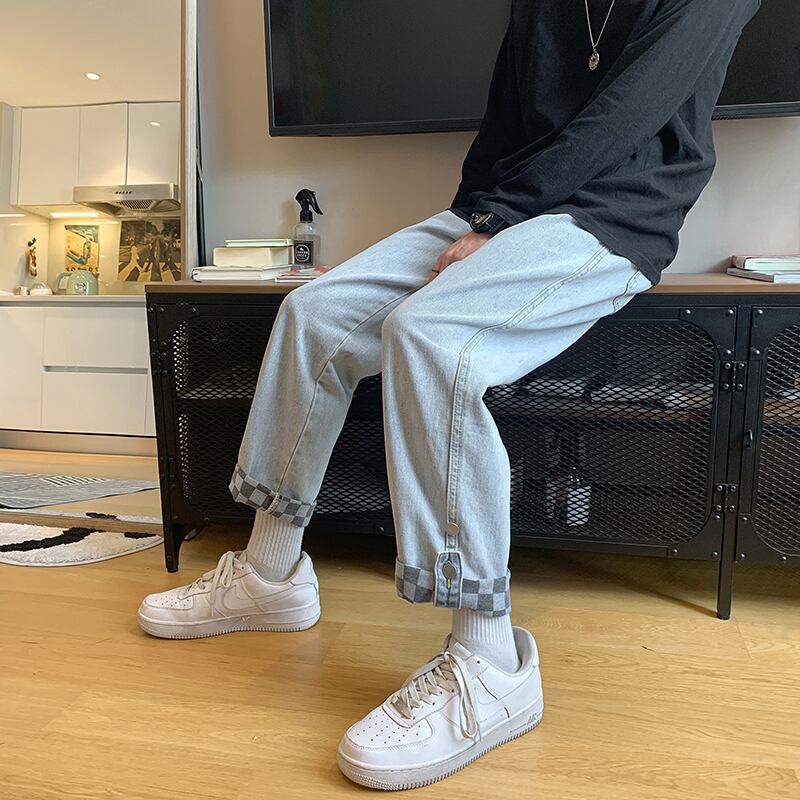 格子柄ジーンズ ルーズパンツ カラーワイドレッグ ストリート ペンダント ワイドパンツ 7/14 mi2063335153972