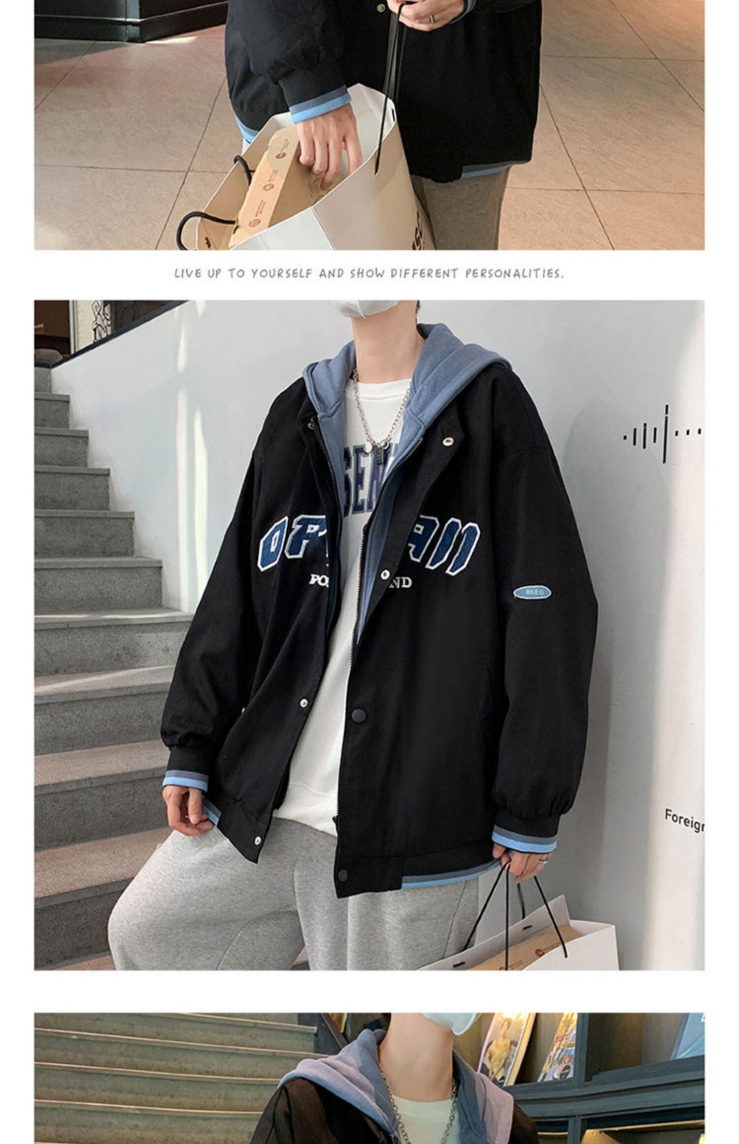 ジャケット スプリングオータムルーズフードオーバーオール スタイル 春物 秋物 7/14 mi2037394121343