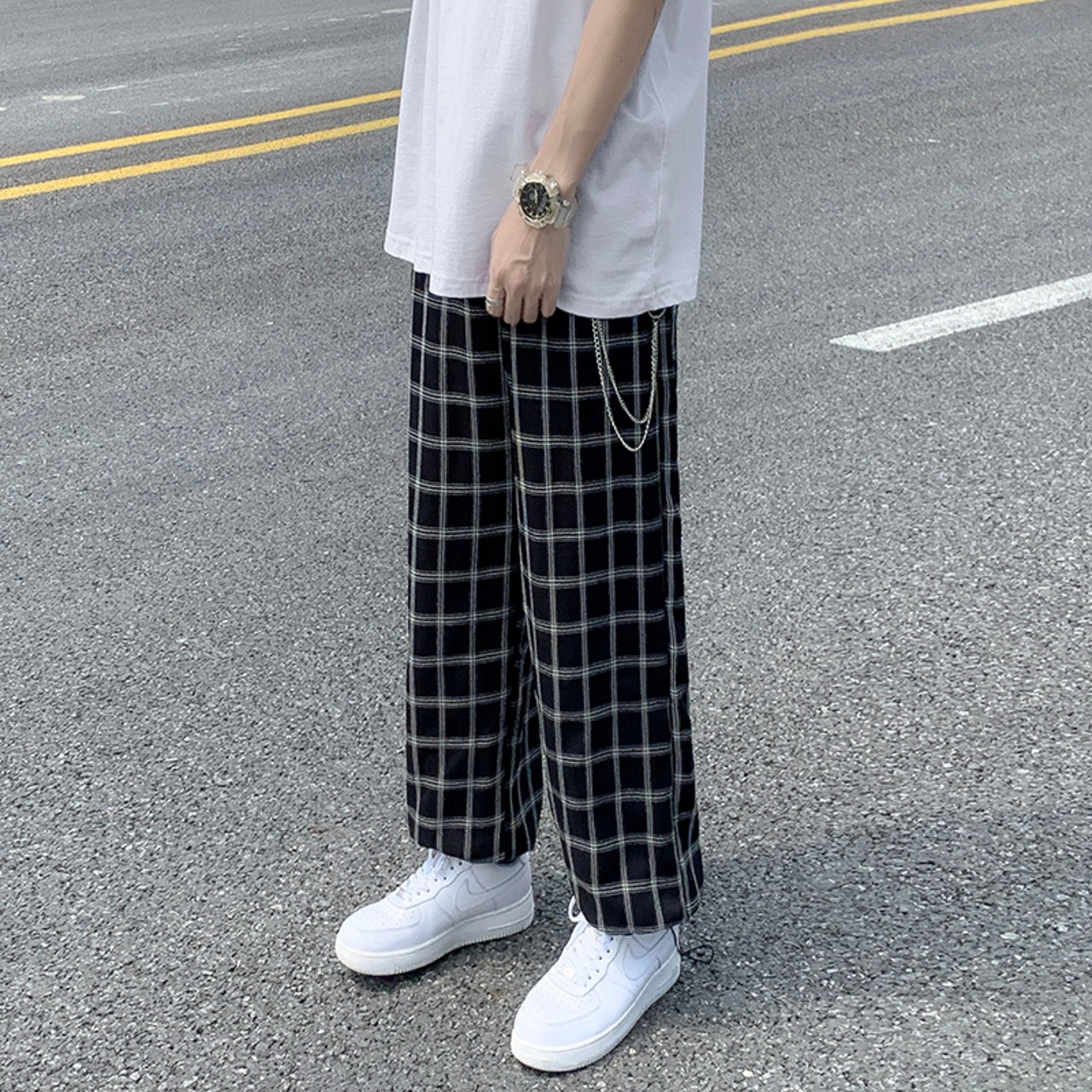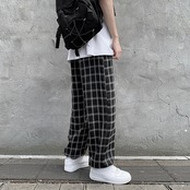スタンダード格子柄カジュアルルーズギャザーパンツ レトロ 7/14 mi206216425932
