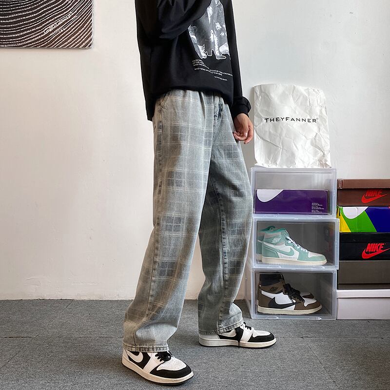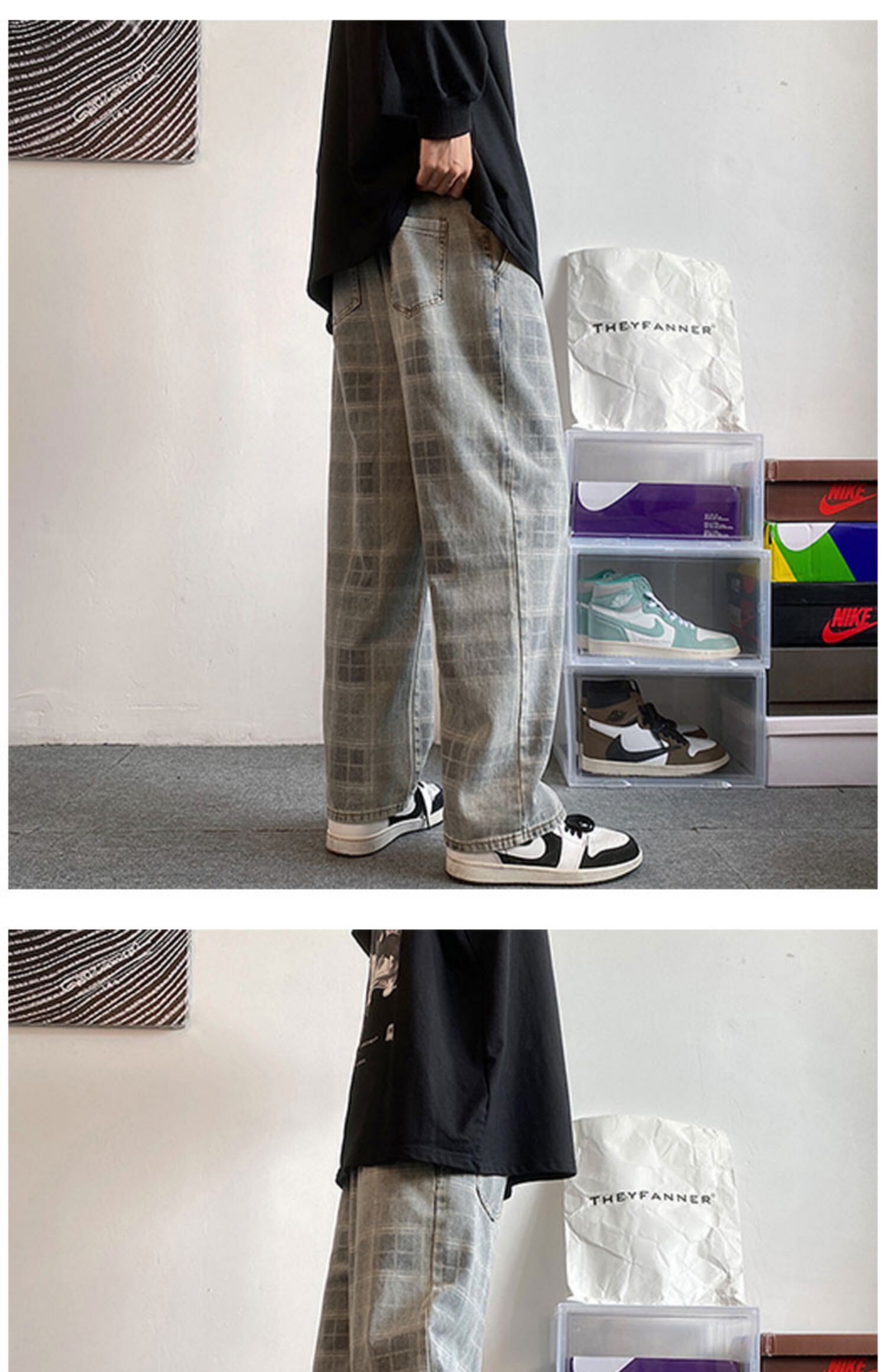 格子柄ジーンズ スタンダードルーズパンツ カジュアル レトロ ストリート 7/14 mi2055177048314