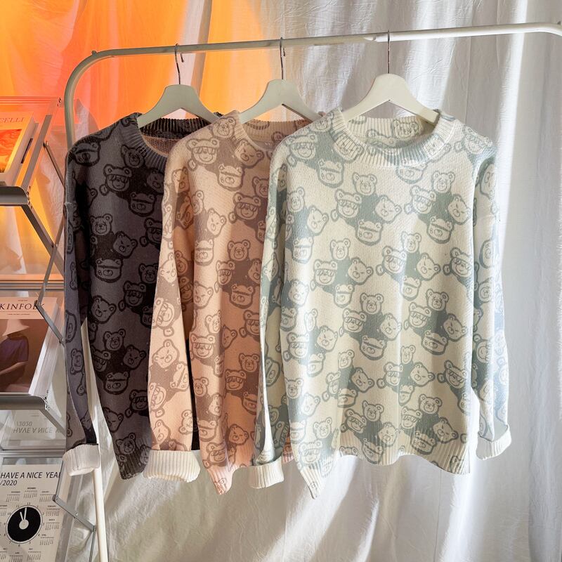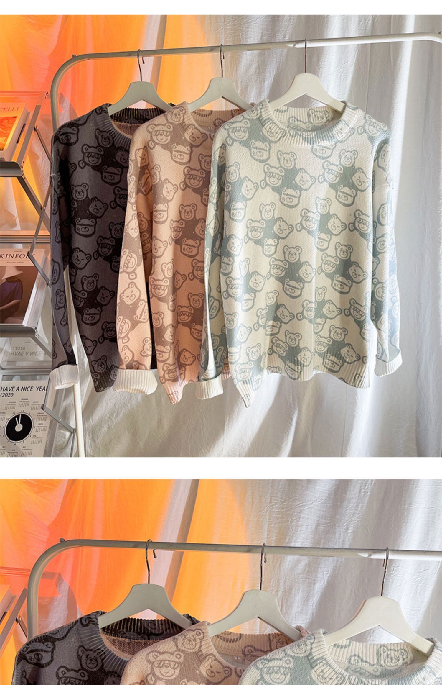 プリント柄セーター スプリングオータムスタイルルーズカジュアルニット かわいい 春物 秋物 7/14 mi2056646195155