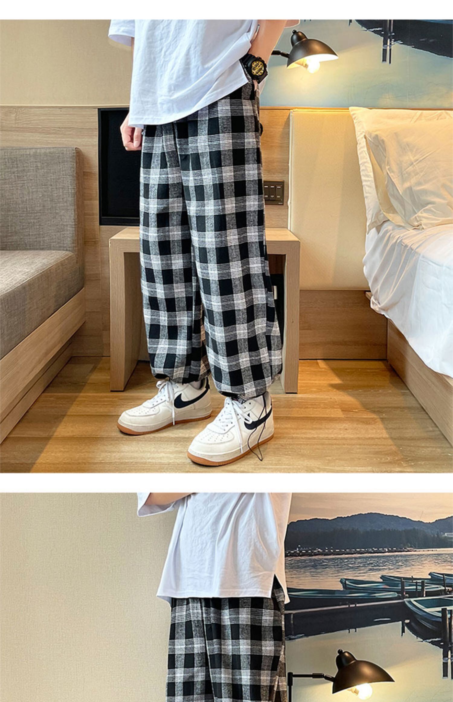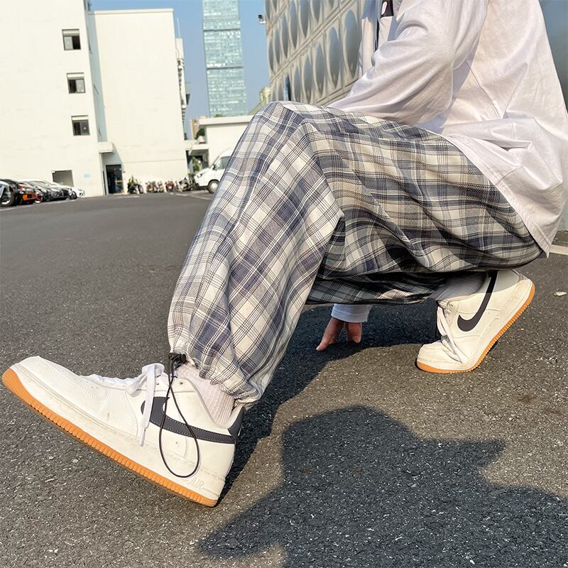 格子柄パンツ サマー薄手スタンダードルーズカジュアルギャザー レトロ 夏物 7/14 mi2080612153759