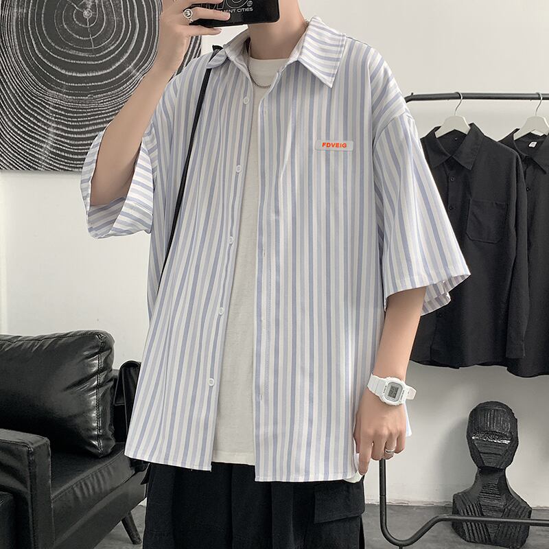 ブルーストライプスリーブシャツ スタイルルーズカジュアルジャケット 7/14 mi2064102704928
