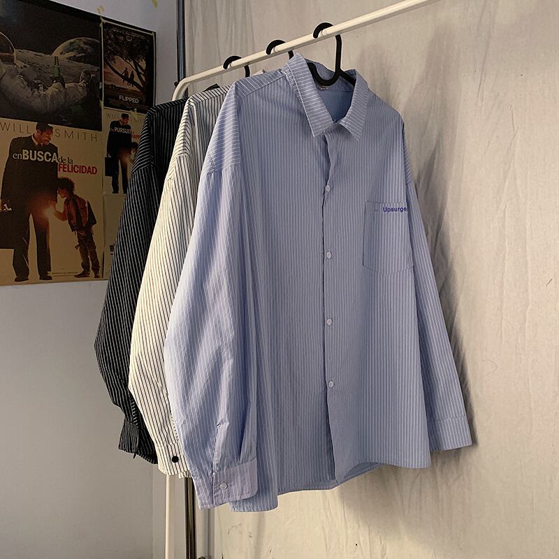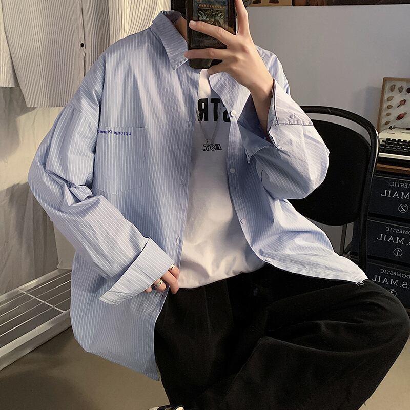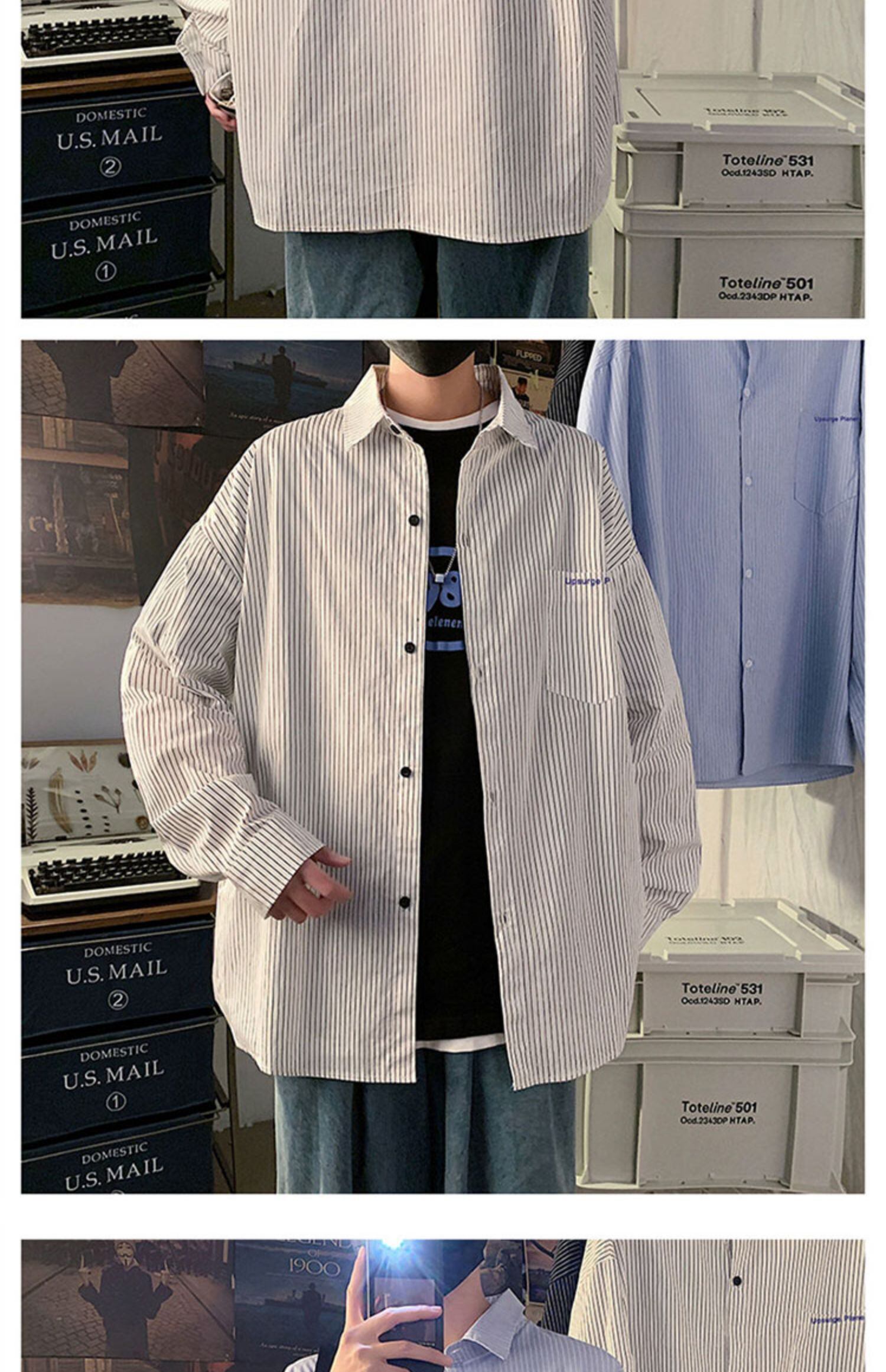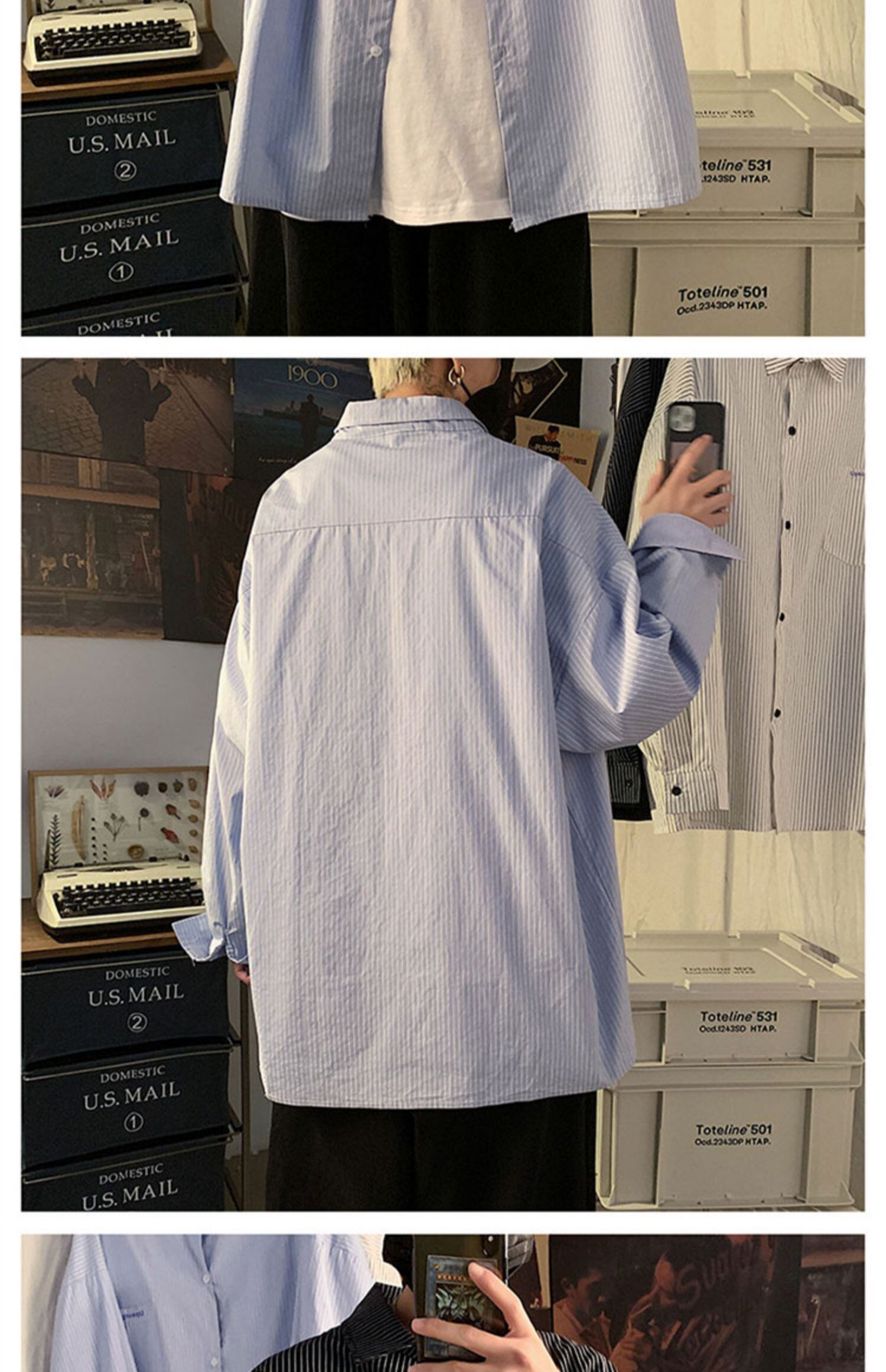 ストライプシャツ ルーズスタイル ロング 7/14 mi2047179100545