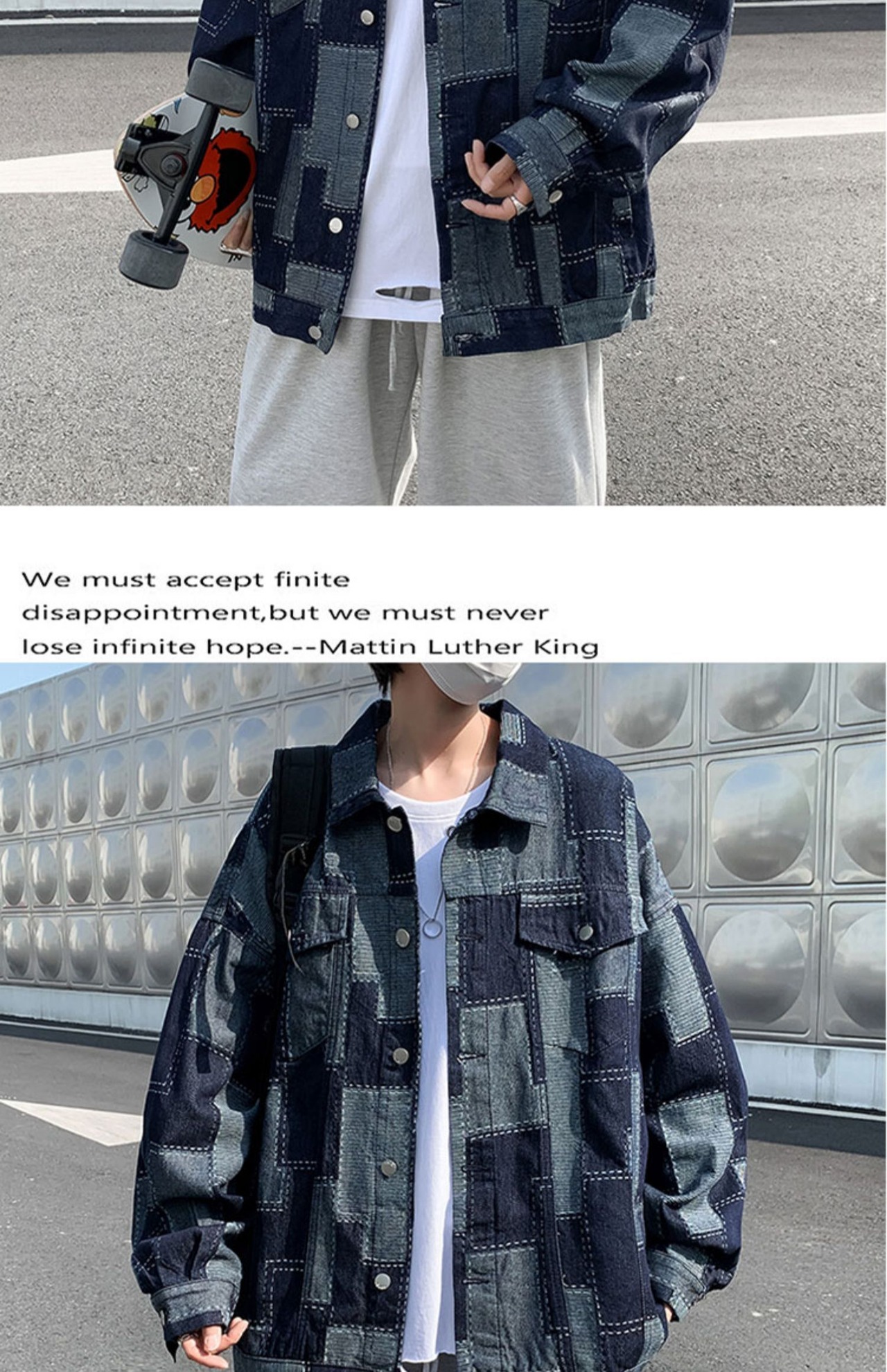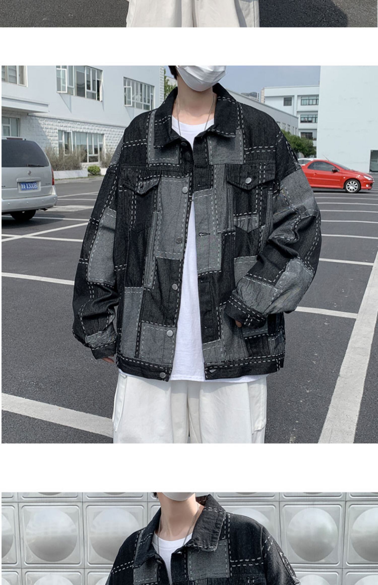 格子柄ジャケット オータムルーズカジュアル ストリート 秋物 ステッチ 7/14 mi2024004062762