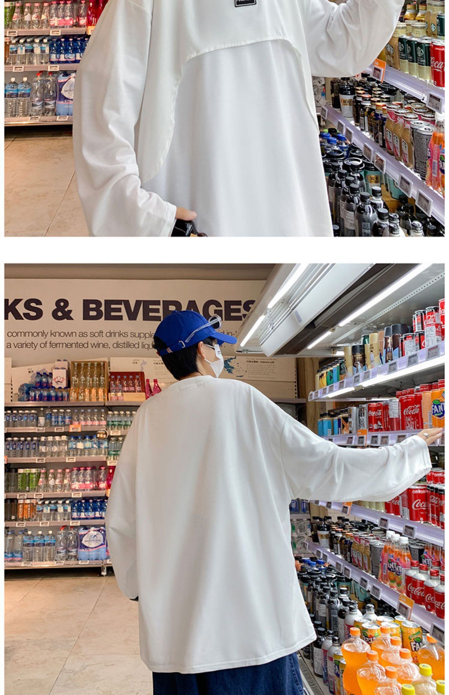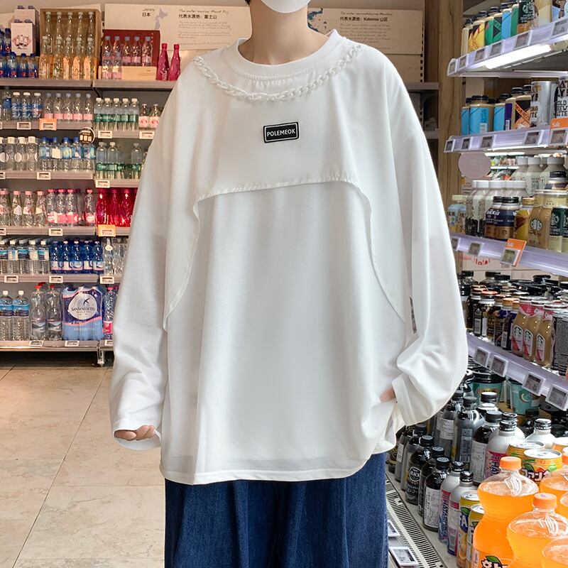 ダークブラックセーター スプリングオータム薄手Tシャツ トップス ロング ストリート 春物 秋物 ステッチ 7/14 mi2073259176199