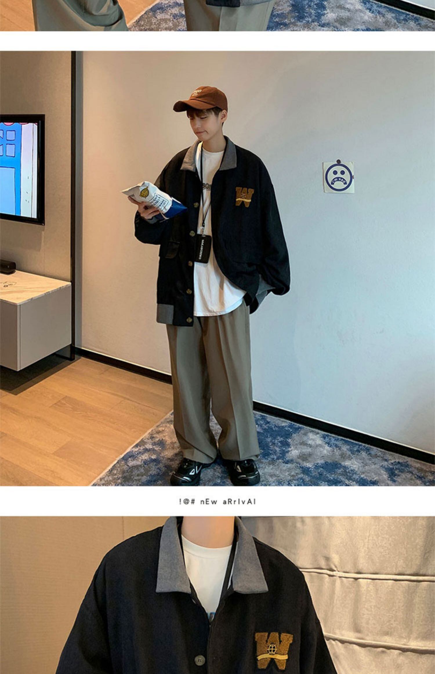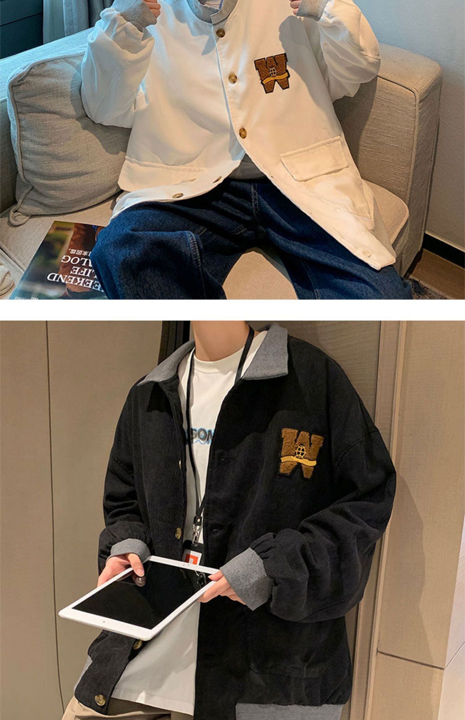 コーデュロイジャケット オータムルーズカジュアル レッド ストリート 刺繍 かわいい 秋物 7/14 mi2092144412168