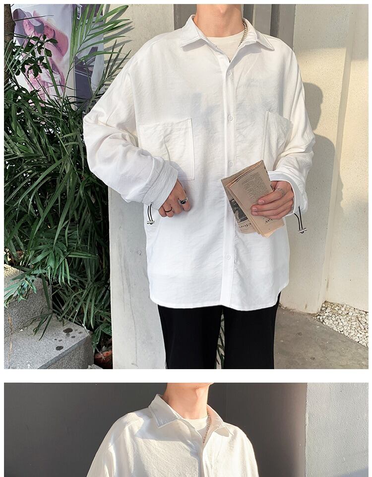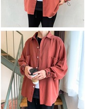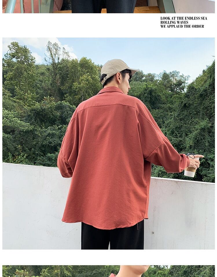レッドソリッド カラーシャツ スタイルカジュアル ロング ソリッドカラー 7/14 mi2028047466921