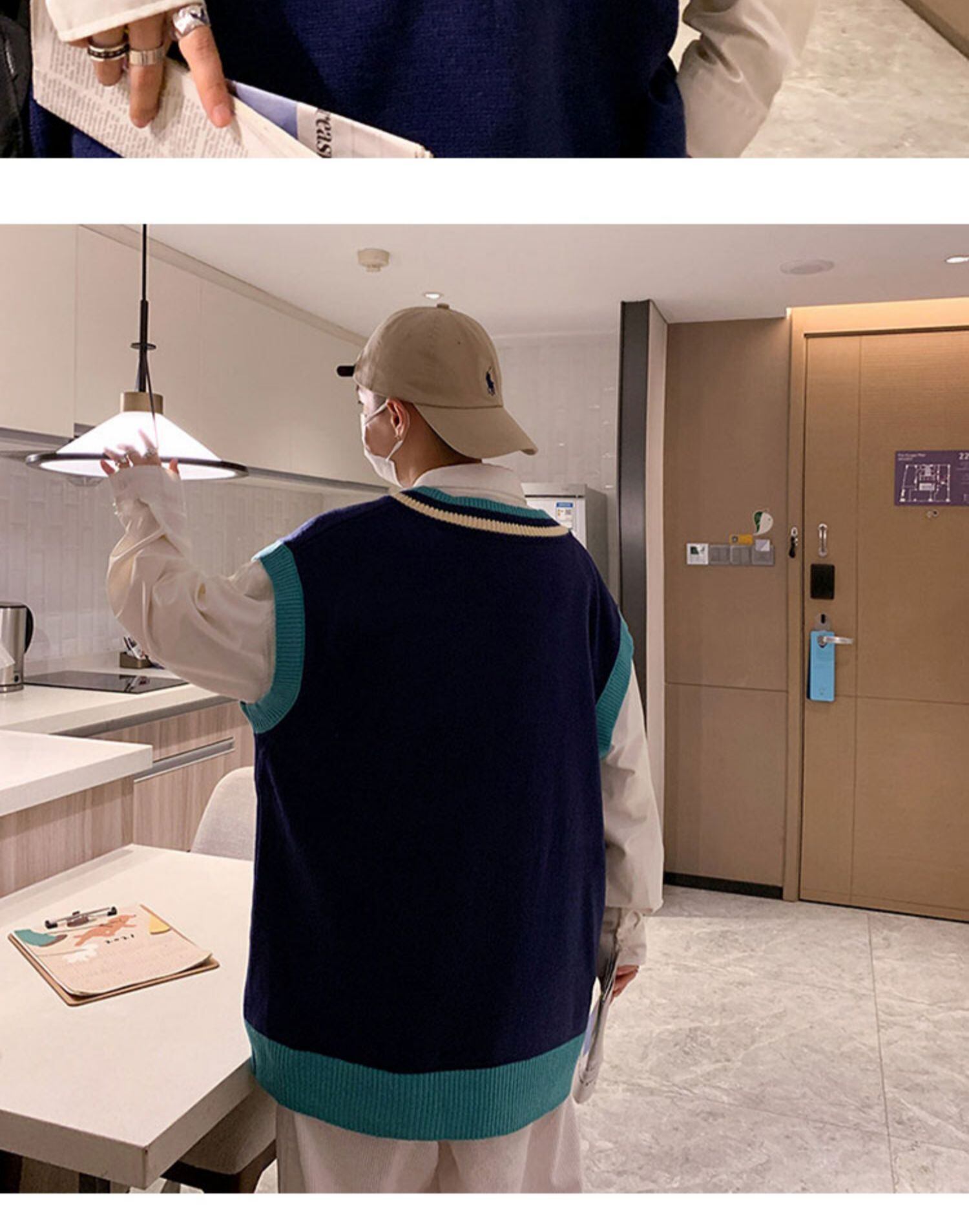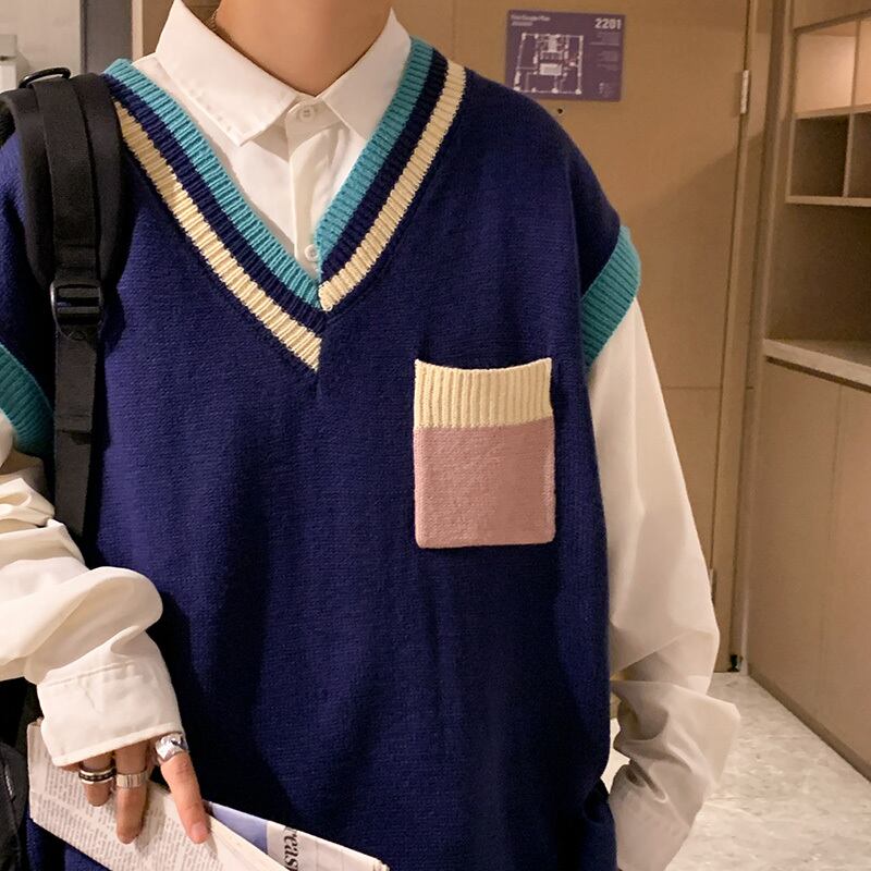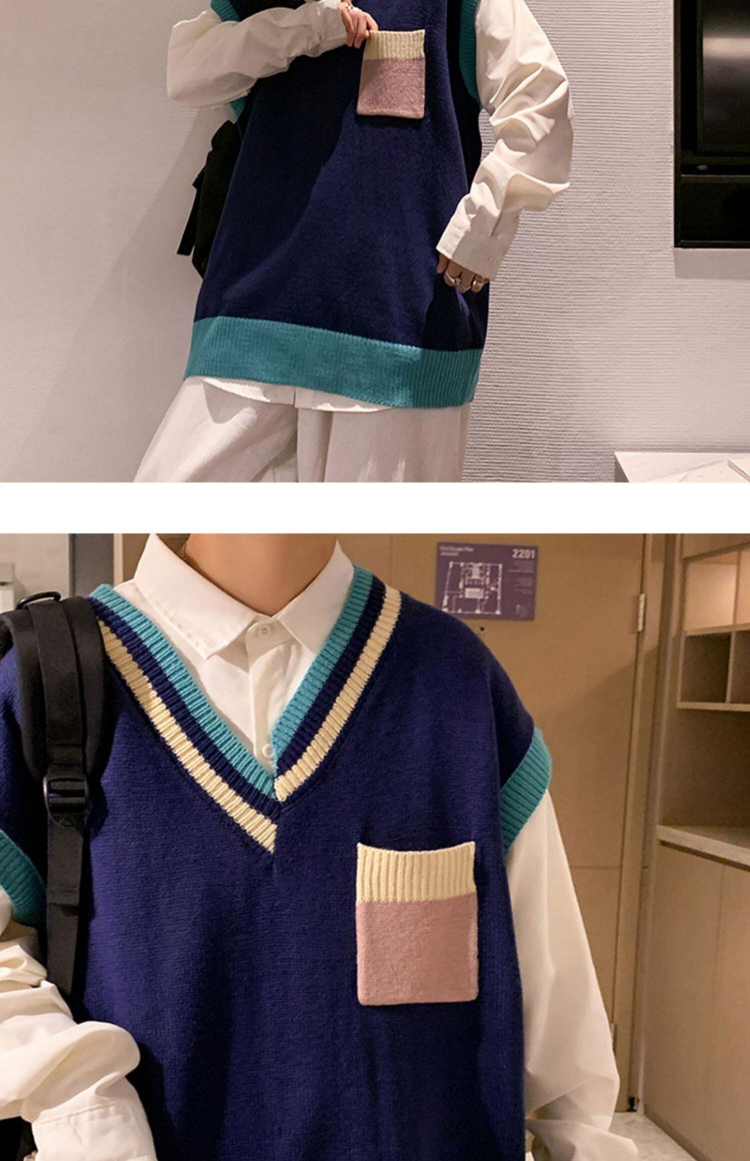 Vネックセーター スプリングオータムルーズポケット 春物 秋物 ステッチ 7/14 mi2025129015493