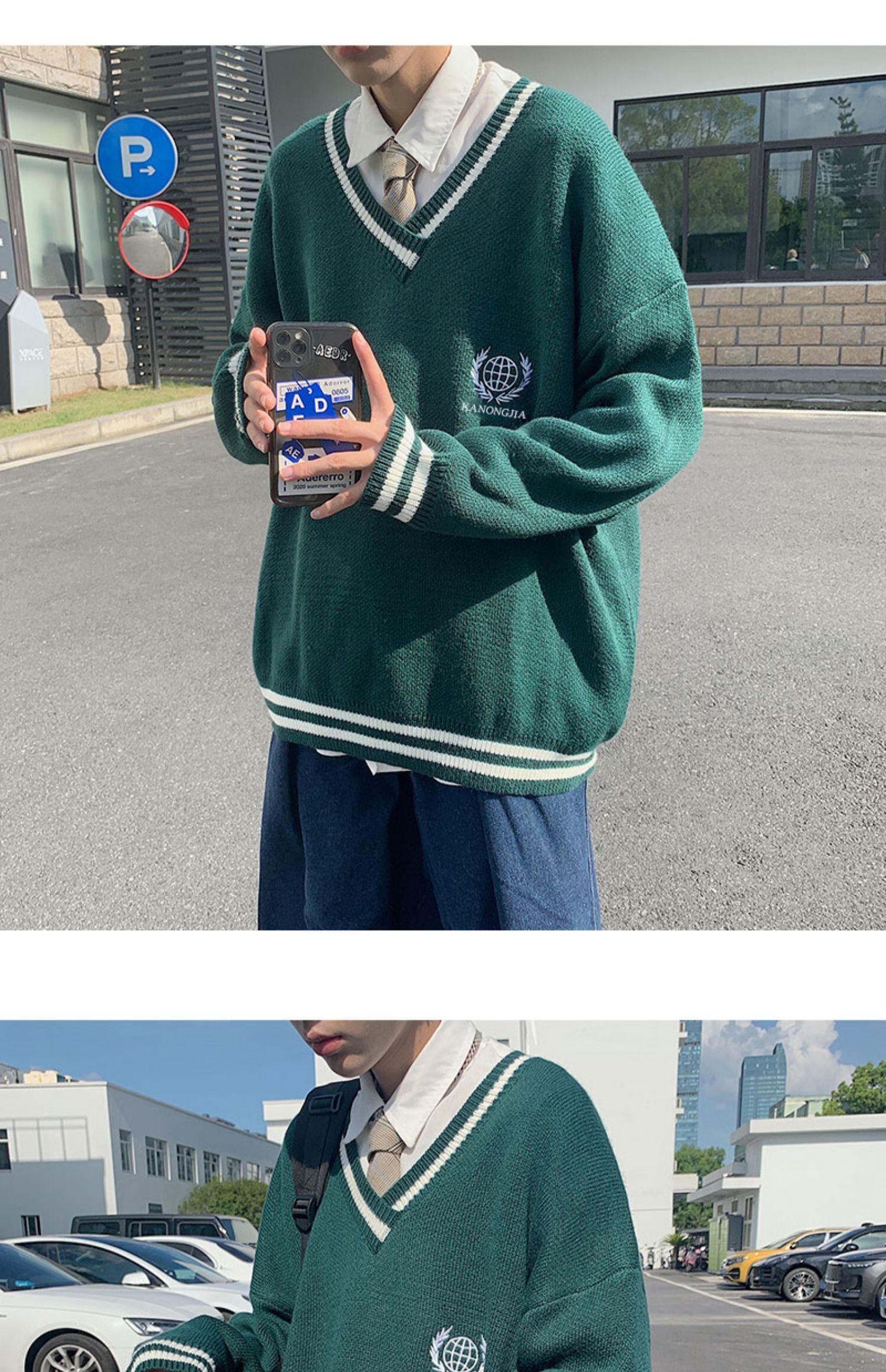 スプリングオータムVネックセーター スタイルルーズカジュアルニットトップス 春物 秋物 7/14 mi2067112851784