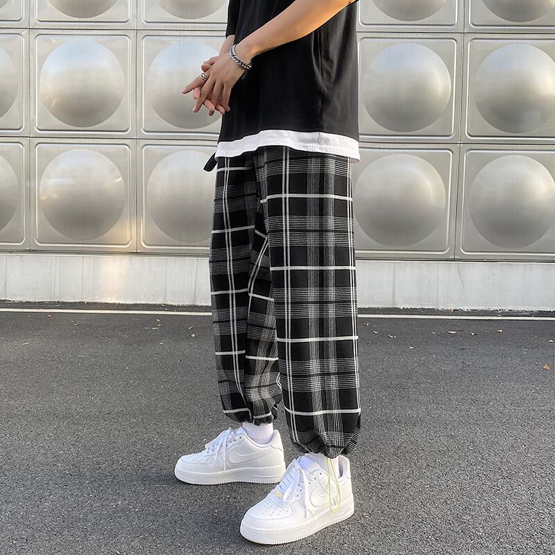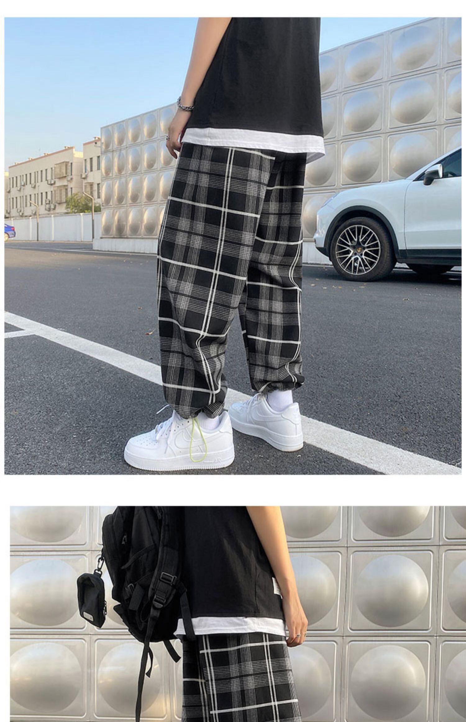 パンツ サマー薄手ルーズスタンダード格子柄カジュアルギャザー レトロ 夏物 7/14 mi2063382485823