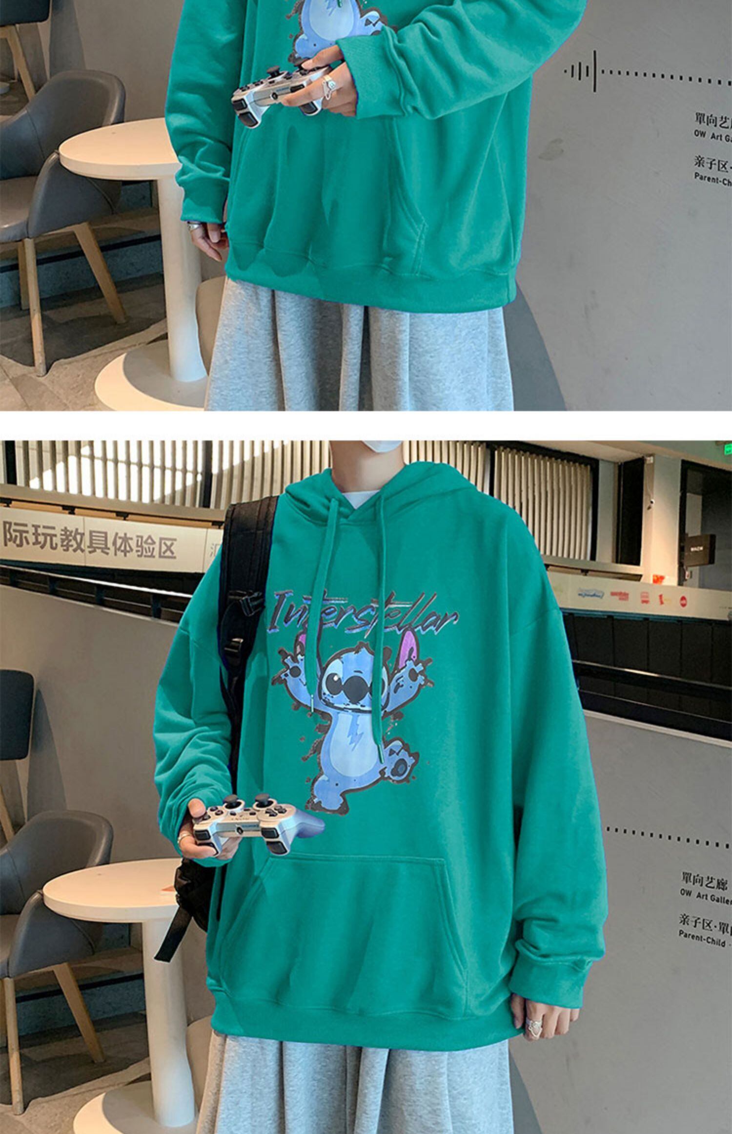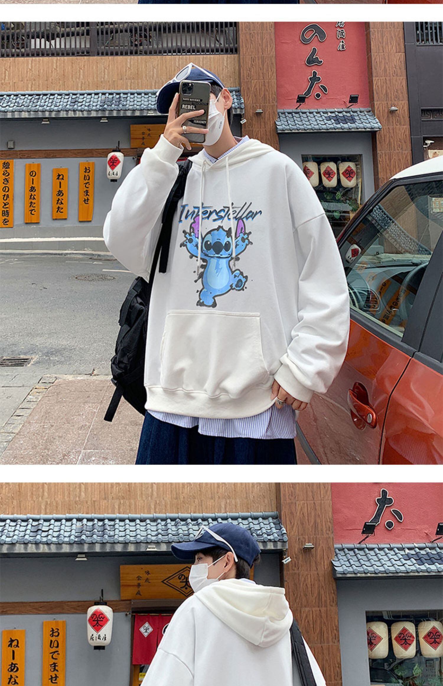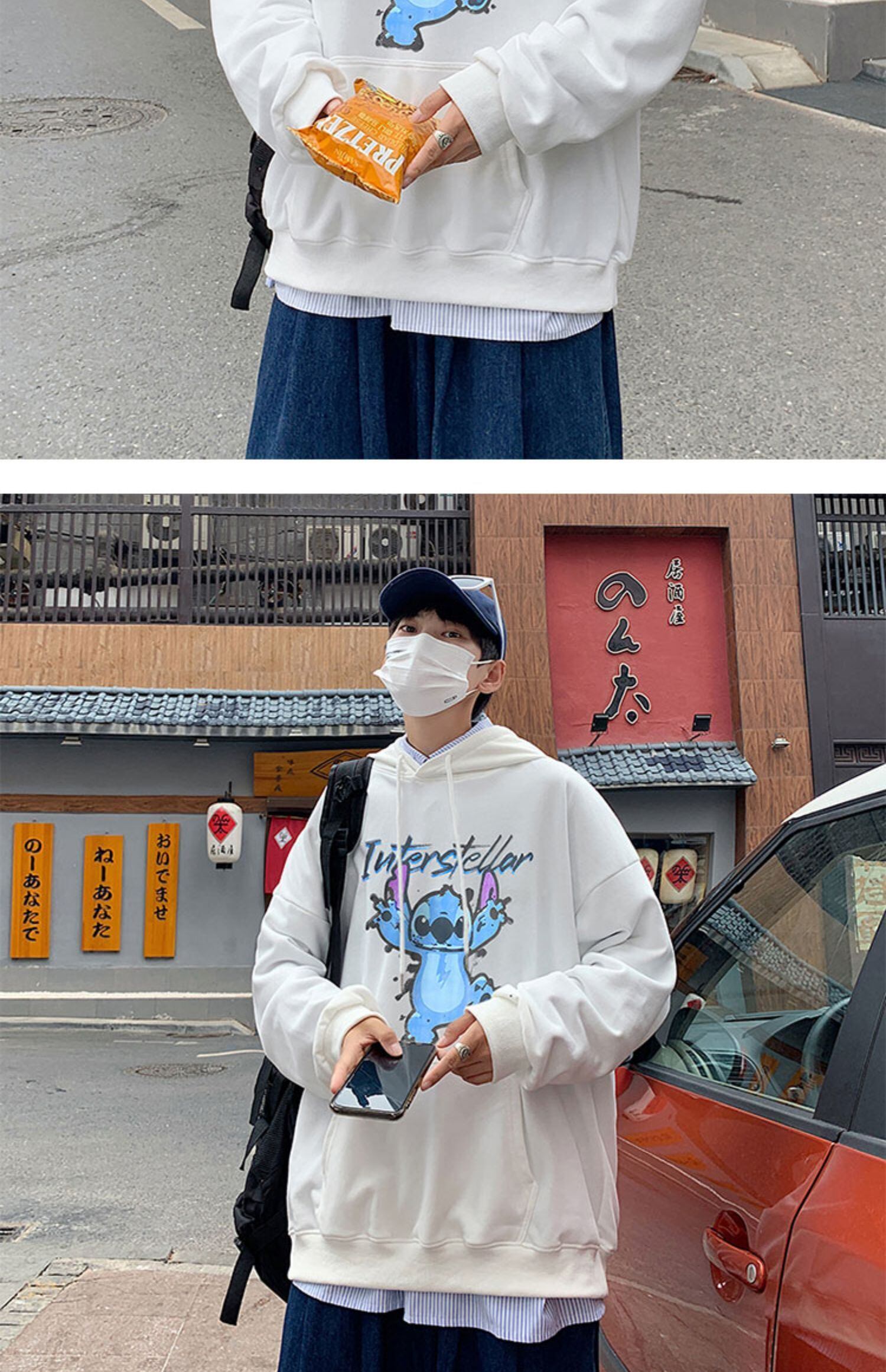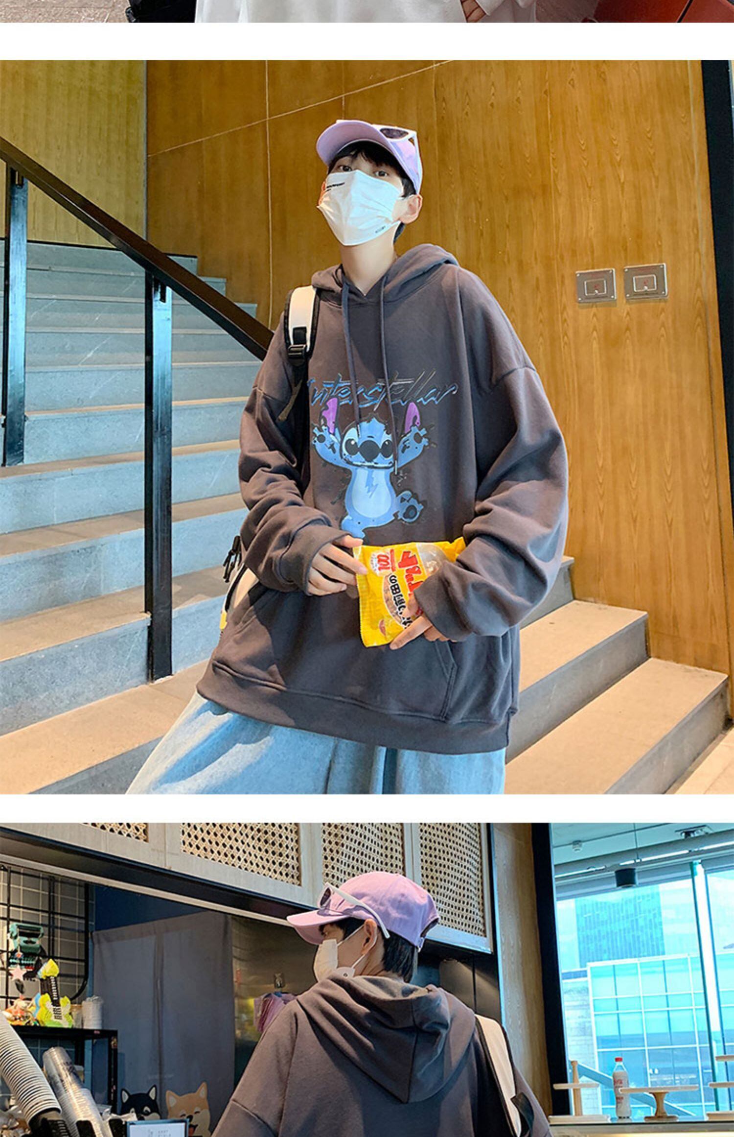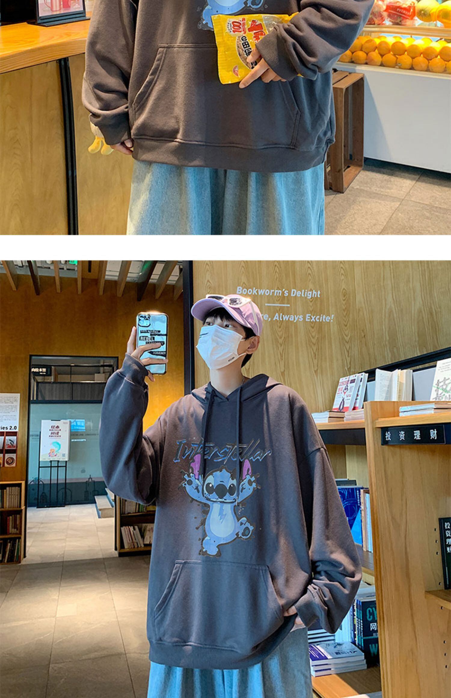 フード薄手セーター スプリングオータムルーズカジュアルスタイルプリント柄プルオーバー トップス 春物 秋物 7/14 mi2092727723267