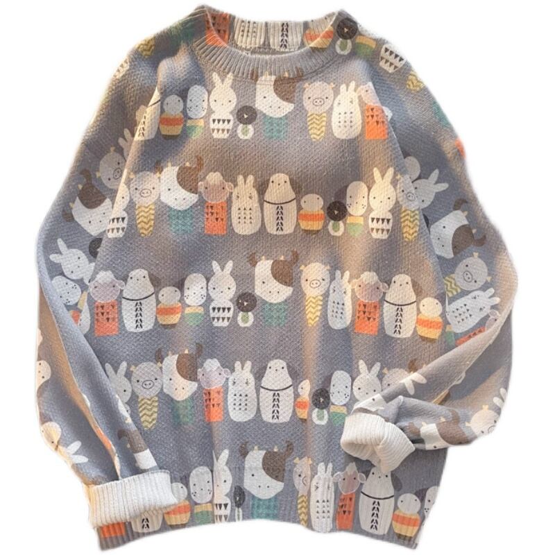 プリントセーター オータムウィンタースタイルルーズカジュアル 秋物 冬物 7/14 mi2049845016959