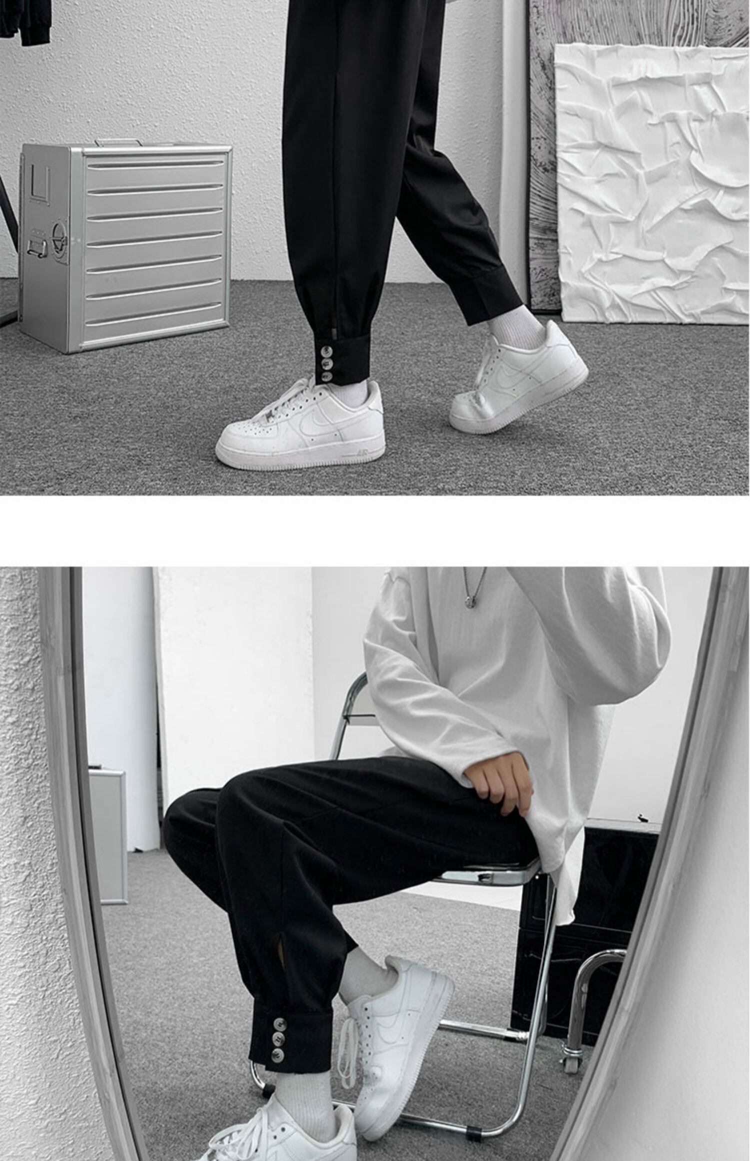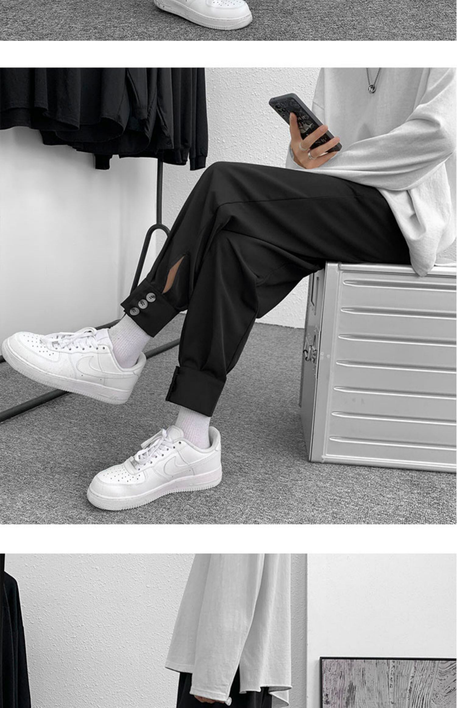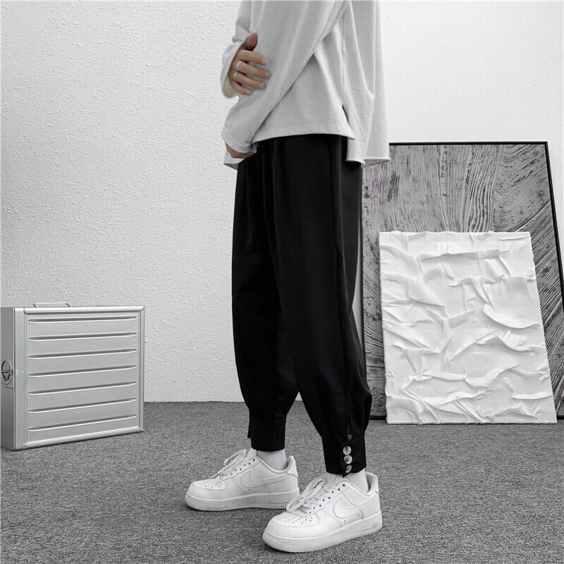 ボタンバックルカジュアルパンツ ルーズソリッド カラー薄手クロップド ソリッドカラー 7/14 mi2051379849640