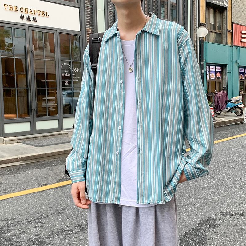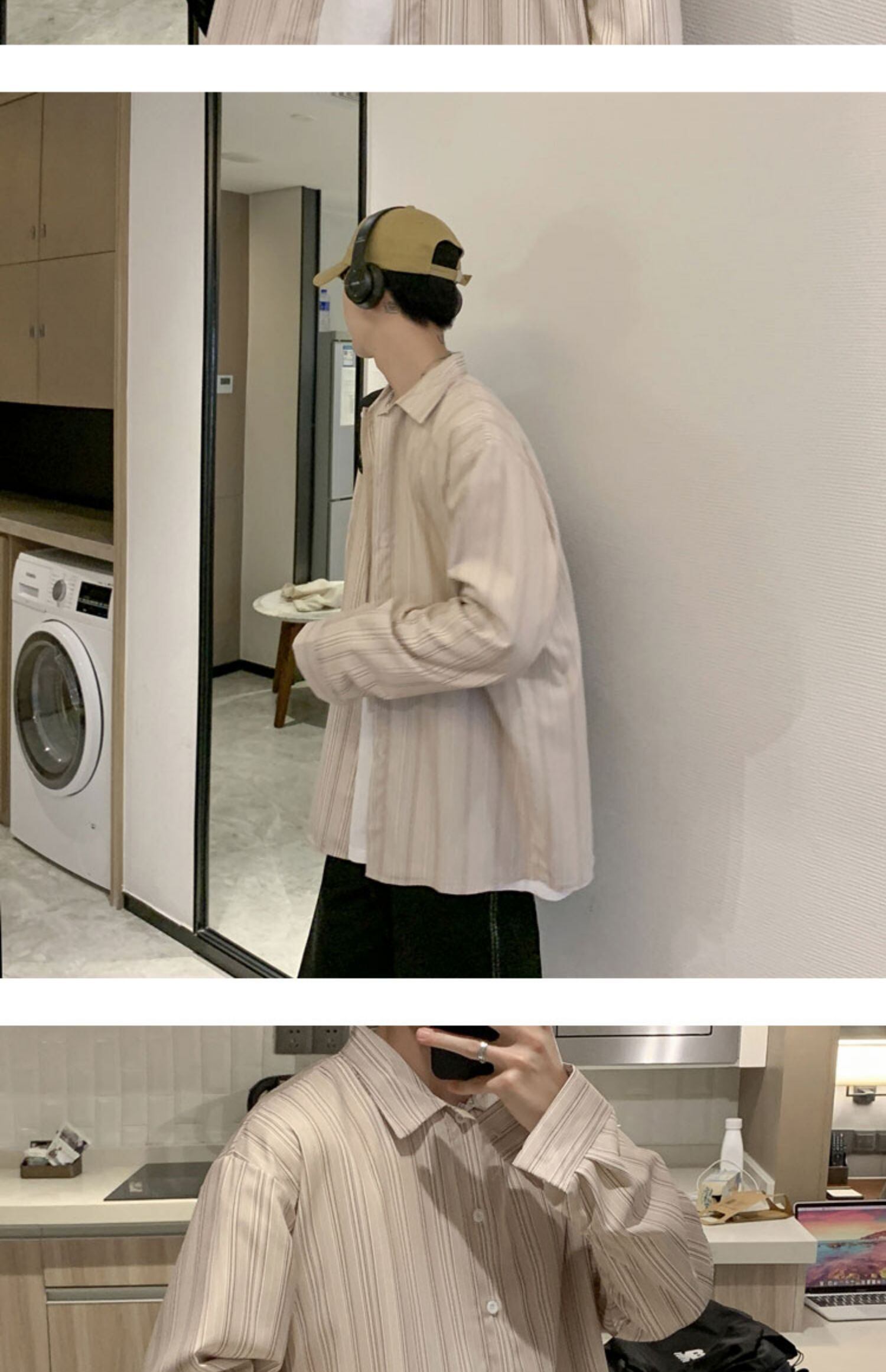 スタイルストライプシャツ スタンダードルーズカジュアルジャケット レトロ かわいい 7/14 mi2095227075772