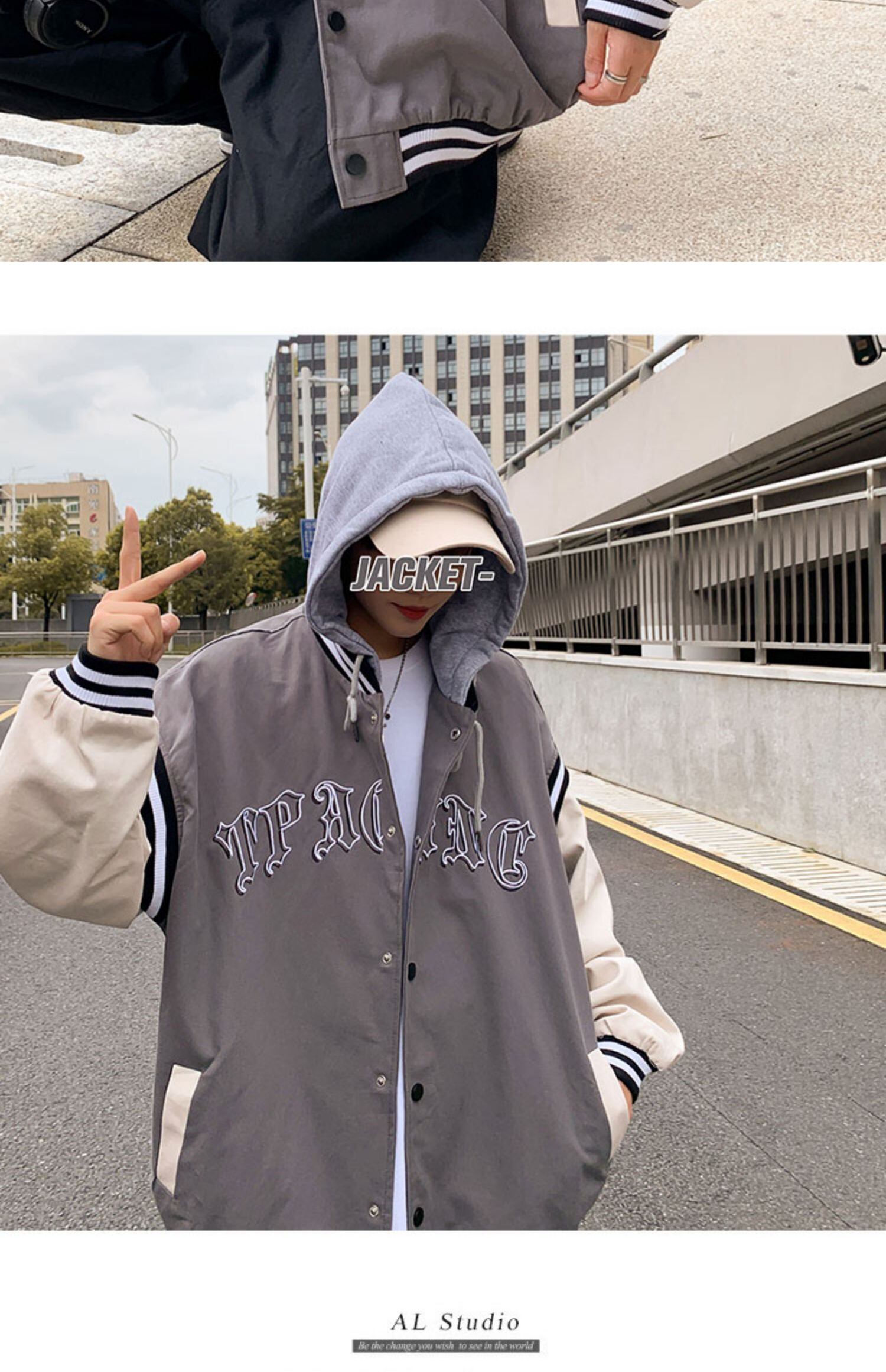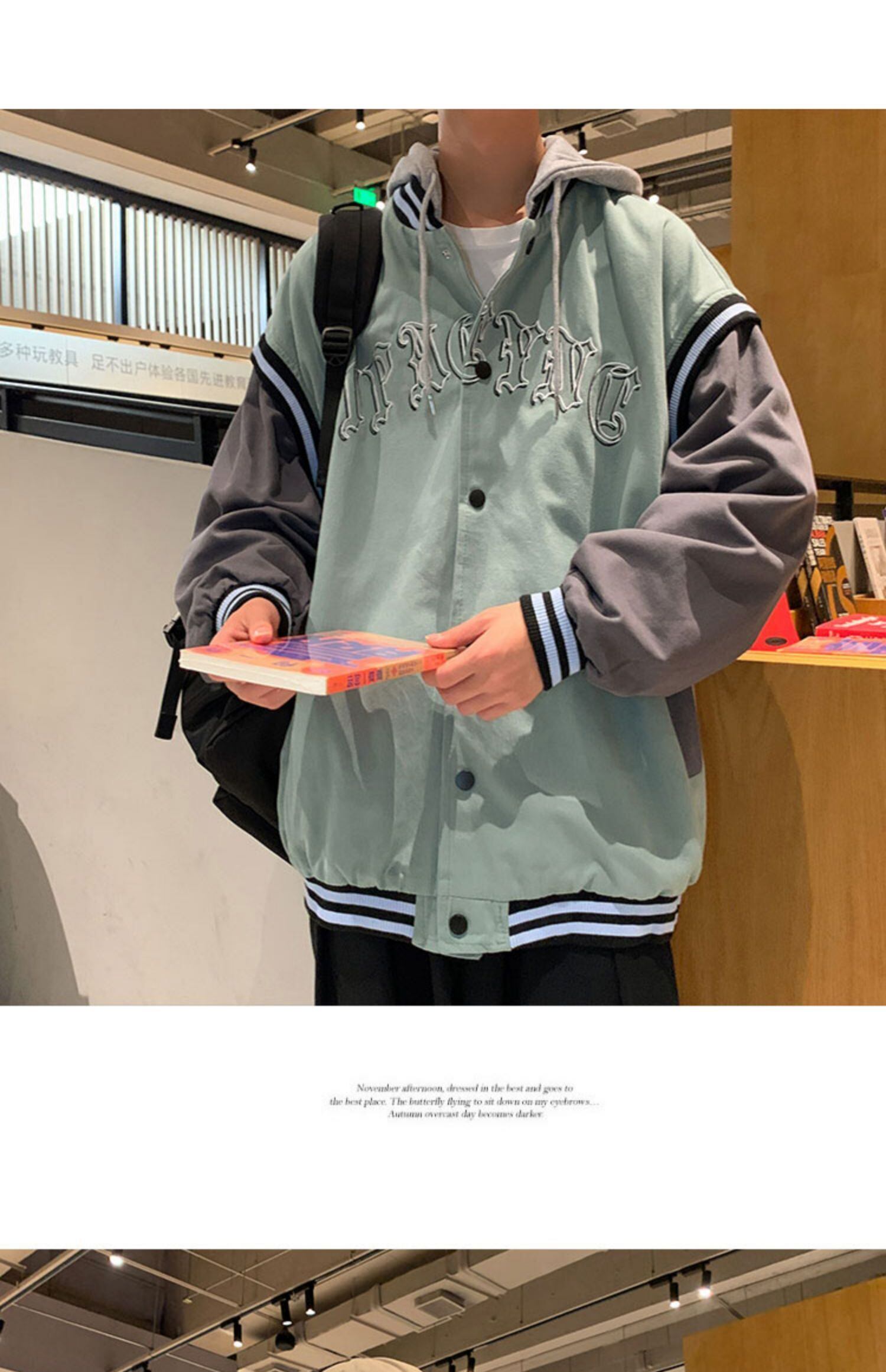 ツーピース ジャケット 自然派ルーズカジュアルカラーフード ステッチ 7/14 mi2064082711484